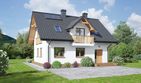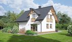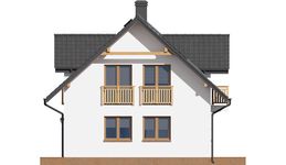 Graficzne opracowanie rzutów poglądowych widocznych na karcie projektu zostało wykonane przez Extradom.pl. Prezentowane przez Extradom.pl wizualizacje wykonane zostały przez autora projektu i należy poczytywać je jedynie za przykład i propozycję wykończenia, wizję architektoniczną autora projektu. Ostateczne wykończenie budynku może nastąpić na wiele sposobów. Szczegółowe rozwiązania zastosowane w oferowanej dokumentacji - w tym również ilość, lokalizacje i wygląd okien, drzwi, kominów - mogą w niewielkim stopniu różnić się od prezentowanej wizualizacji budynku.
