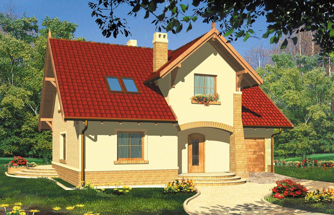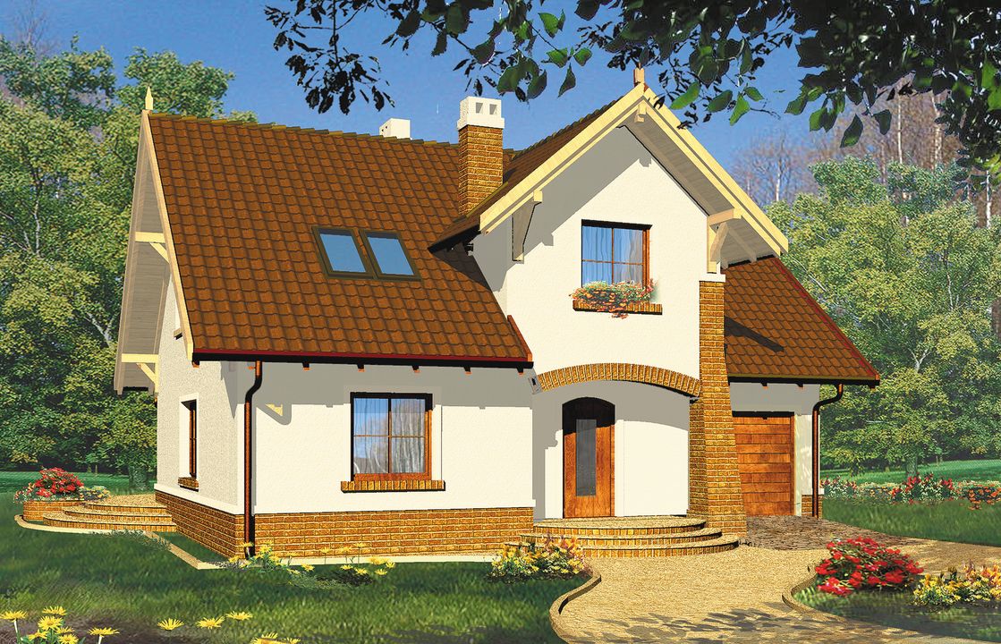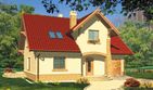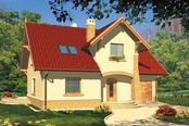 Konstrukcja ściany zewnętrzne - beton komórkowy gr. 24cm + styropian Termo Organika Termonium Plus gr. 12cm; ściany wewnętrzne - bloczek silikatowy gr. 24cm; ściany fundamentowe - bloczek betonowy; strop - Teriva; konstrukcja dachu - drewniana Instalacje W projekcie przewidziano instalacjie: c.o. i c.w.u., grzejniki płytowe, instalacje wodno-kanalizacyjna oraz elektryczne, wentylacja grawitacyjna. Wykończenie pokrycie dachowe - dachówka cementowa (w ramach adaptacji inny materiał); ścianki działowe na parterze-bloczek silikatowy, na poddaszu z płyt gipsowo-kartonowych; schody drewniane - dwubiegowe ze spocznikiem, okna - PVC, okna dachowe i wyłaz dachowy - Fakro.