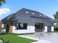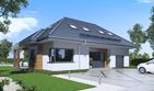 Graficzne opracowanie rzutów poglądowych widocznych na karcie projektu zostało wykonane przez Extradom.pl. Prezentowane przez Extradom.pl wizualizacje wykonane zostały przez autora projektu i należy poczytywać je jedynie za przykład i propozycję wykończenia, wizję architektoniczną autora projektu. Ostateczne wykończenie budynku może nastąpić na wiele sposobów. Szczegółowe rozwiązania zastosowane w oferowanej dokumentacji - w tym również ilość, lokalizacje i wygląd okien, drzwi, kominów - mogą w niewielkim stopniu różnić się od prezentowanej wizualizacji budynku.