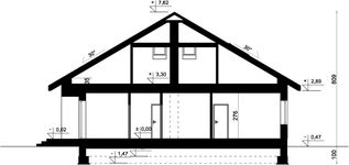 Graficzne opracowanie rzutów poglądowych widocznych na karcie projektu zostało wykonane przez Extradom.pl. Prezentowane przez Extradom.pl wizualizacje wykonane zostały przez autora projektu i należy poczytywać je jedynie za przykład i propozycję wykończenia, wizję architektoniczną autora projektu. Ostateczne wykończenie budynku może nastąpić na wiele sposobów. Szczegółowe rozwiązania zastosowane w oferowanej dokumentacji - w tym również ilość, lokalizacje i wygląd okien, drzwi, kominów - mogą w niewielkim stopniu różnić się od prezentowanej wizualizacji budynku.