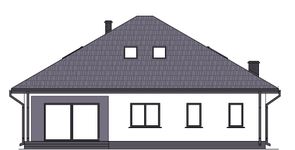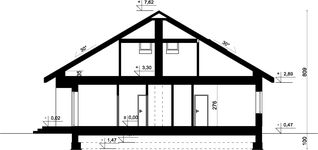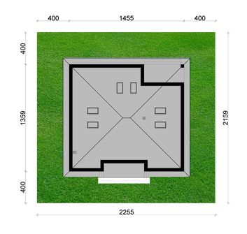 Graficzne opracowanie rzutów poglądowych widocznych na karcie projektu zostało wykonane przez Extradom.pl. Prezentowane przez Extradom.pl wizualizacje wykonane zostały przez autora projektu i należy poczytywać je jedynie za przykład i propozycję wykończenia, wizję architektoniczną autora projektu. Ostateczne wykończenie budynku może nastąpić na wiele sposobów. Szczegółowe rozwiązania zastosowane w oferowanej dokumentacji - w tym również ilość, lokalizacje i wygląd okien, drzwi, kominów - mogą w niewielkim stopniu różnić się od prezentowanej wizualizacji budynku.