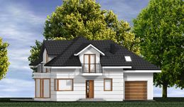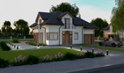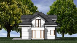 Graficzne opracowanie rzutów poglądowych widocznych na karcie projektu zostało wykonane przez Extradom.pl. Prezentowane przez Extradom.pl wizualizacje wykonane zostały przez autora projektu i należy poczytywać je jedynie za przykład i propozycję wykończenia, wizję architektoniczną autora projektu. Ostateczne wykończenie budynku może nastąpić na wiele sposobów. Szczegółowe rozwiązania zastosowane w oferowanej dokumentacji - w tym również ilość, lokalizacje i wygląd okien, drzwi, kominów - mogą w niewielkim stopniu różnić się od prezentowanej wizualizacji budynku.