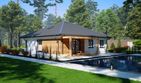 Graficzne opracowanie rzutów poglądowych widocznych na karcie projektu zostało wykonane przez Extradom.pl. Prezentowane przez Extradom.pl wizualizacje wykonane zostały przez autora projektu i należy poczytywać je jedynie za przykład i propozycję wykończenia, wizję architektoniczną autora projektu. Ostateczne wykończenie budynku może nastąpić na wiele sposobów. Szczegółowe rozwiązania zastosowane w oferowanej dokumentacji - w tym również ilość, lokalizacje i wygląd okien, drzwi, kominów - mogą w niewielkim stopniu różnić się od prezentowanej wizualizacji budynku.