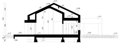 Ściany: ścianka zewnętrzna z pustaka ceramicznego o grubości 25 cm. Ocieplenie: styropian grubości 18 cm. Strop: monolityczny. Dach: drewniany, dwuspadowy, pokryty blachą na rąbek stojący. Kocioł: gazowy. Ogrzewanie podłogowe: zastosowano w kuchni, jadalni, salonie i łazienkach. Wentylacja: mechaniczna.