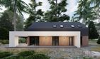 Graficzne opracowanie rzutów poglądowych widocznych na karcie projektu zostało wykonane przez Extradom.pl. Prezentowane przez Extradom.pl wizualizacje wykonane zostały przez autora projektu i należy poczytywać je jedynie za przykład i propozycję wykończenia, wizję architektoniczną autora projektu. Ostateczne wykończenie budynku może nastąpić na wiele sposobów. Szczegółowe rozwiązania zastosowane w oferowanej dokumentacji - w tym również ilość, lokalizacje i wygląd okien, drzwi, kominów - mogą w niewielkim stopniu różnić się od prezentowanej wizualizacji budynku.