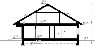 Graficzne opracowanie rzutów poglądowych widocznych na karcie projektu zostało wykonane przez Extradom.pl. Prezentowane przez Extradom.pl wizualizacje wykonane zostały przez autora projektu i należy poczytywać je jedynie za przykład i propozycję wykończenia, wizję architektoniczną autora projektu. Ostateczne wykończenie budynku może nastąpić na wiele sposobów. Szczegółowe rozwiązania zastosowane w oferowanej dokumentacji - w tym również ilość, lokalizacje i wygląd okien, drzwi, kominów - mogą w niewielkim stopniu różnić się od prezentowanej wizualizacji budynku.