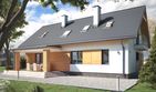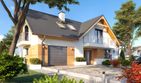 Graficzne opracowanie rzutów poglądowych widocznych na karcie projektu zostało wykonane przez Extradom.pl. Prezentowane przez Extradom.pl wizualizacje wykonane zostały przez autora projektu i należy poczytywać je jedynie za przykład i propozycję wykończenia, wizję architektoniczną autora projektu. Ostateczne wykończenie budynku może nastąpić na wiele sposobów. Szczegółowe rozwiązania zastosowane w oferowanej dokumentacji - w tym również ilość, lokalizacje i wygląd okien, drzwi, kominów - mogą w niewielkim stopniu różnić się od prezentowanej wizualizacji budynku.