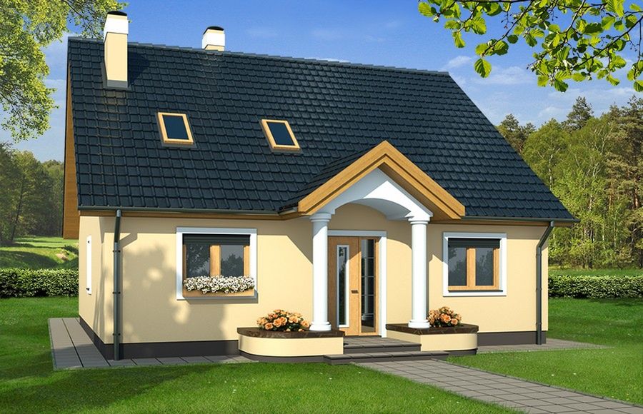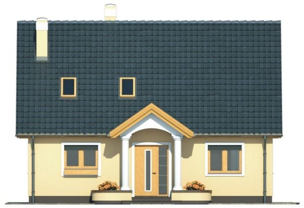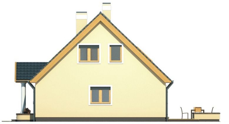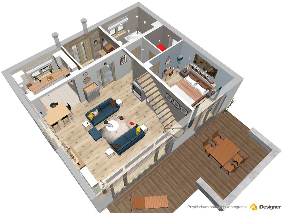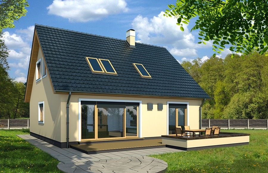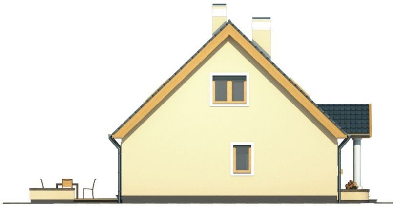 Graficzne opracowanie rzutów poglądowych widocznych na karcie projektu zostało wykonane przez Extradom.pl. Prezentowane przez Extradom.pl wizualizacje wykonane zostały przez autora projektu i należy poczytywać je jedynie za przykład i propozycję wykończenia, wizję architektoniczną autora projektu. Ostateczne wykończenie budynku może nastąpić na wiele sposobów. Szczegółowe rozwiązania zastosowane w oferowanej dokumentacji - w tym również ilość, lokalizacje i wygląd okien, drzwi, kominów - mogą w niewielkim stopniu różnić się od prezentowanej wizualizacji budynku.