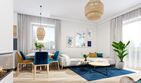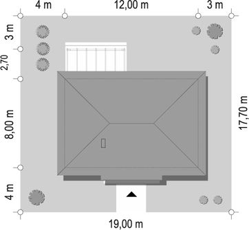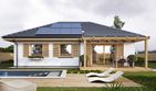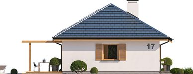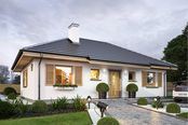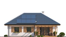 Graficzne opracowanie rzutów poglądowych widocznych na karcie projektu zostało wykonane przez Extradom.pl. Prezentowane przez Extradom.pl wizualizacje wykonane zostały przez autora projektu i należy poczytywać je jedynie za przykład i propozycję wykończenia, wizję architektoniczną autora projektu. Ostateczne wykończenie budynku może nastąpić na wiele sposobów. Szczegółowe rozwiązania zastosowane w oferowanej dokumentacji - w tym również ilość, lokalizacje i wygląd okien, drzwi, kominów - mogą w niewielkim stopniu różnić się od prezentowanej wizualizacji budynku.