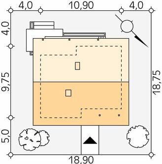 Graficzne opracowanie rzutów poglądowych widocznych na karcie projektu zostało wykonane przez Extradom.pl. Prezentowane przez Extradom.pl wizualizacje wykonane zostały przez autora projektu i należy poczytywać je jedynie za przykład i propozycję wykończenia, wizję architektoniczną autora projektu. Ostateczne wykończenie budynku może nastąpić na wiele sposobów. Szczegółowe rozwiązania zastosowane w oferowanej dokumentacji - w tym również ilość, lokalizacje i wygląd okien, drzwi, kominów - mogą w niewielkim stopniu różnić się od prezentowanej wizualizacji budynku.