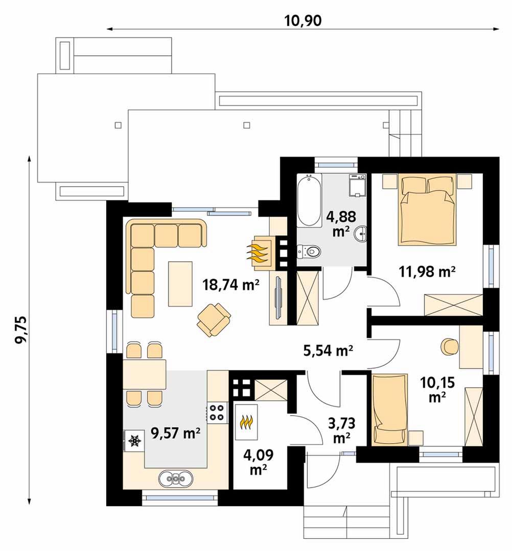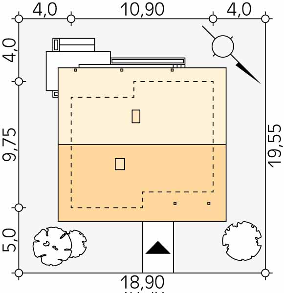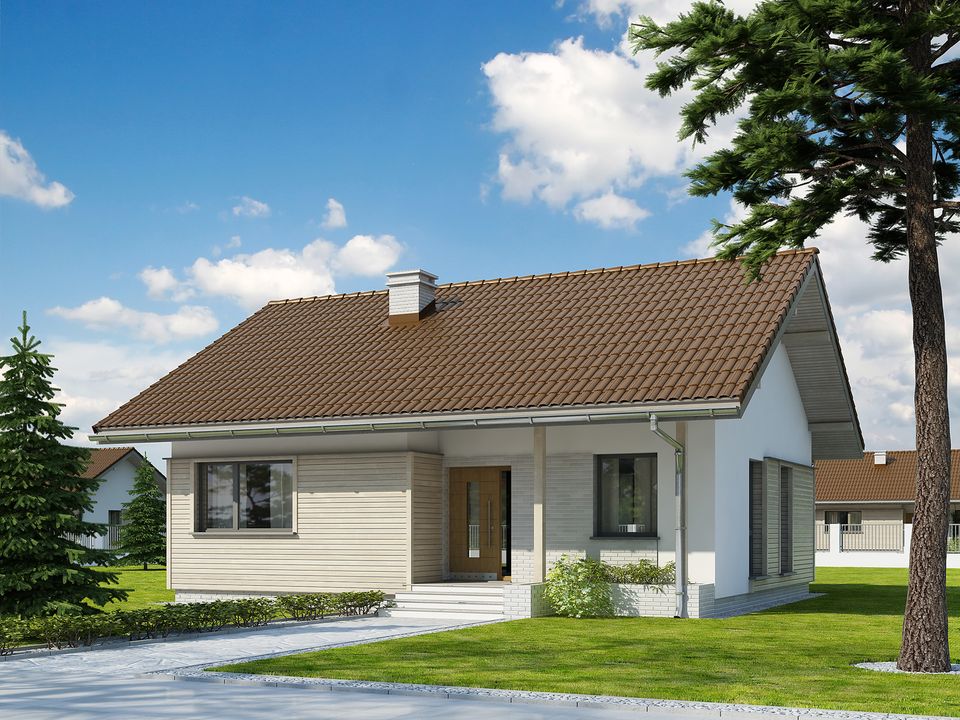 Graficzne opracowanie rzutów poglądowych widocznych na karcie projektu zostało wykonane przez Extradom.pl. Prezentowane przez Extradom.pl wizualizacje wykonane zostały przez autora projektu i należy poczytywać je jedynie za przykład i propozycję wykończenia, wizję architektoniczną autora projektu. Ostateczne wykończenie budynku może nastąpić na wiele sposobów. Szczegółowe rozwiązania zastosowane w oferowanej dokumentacji - w tym również ilość, lokalizacje i wygląd okien, drzwi, kominów - mogą w niewielkim stopniu różnić się od prezentowanej wizualizacji budynku.