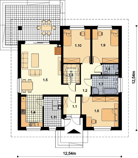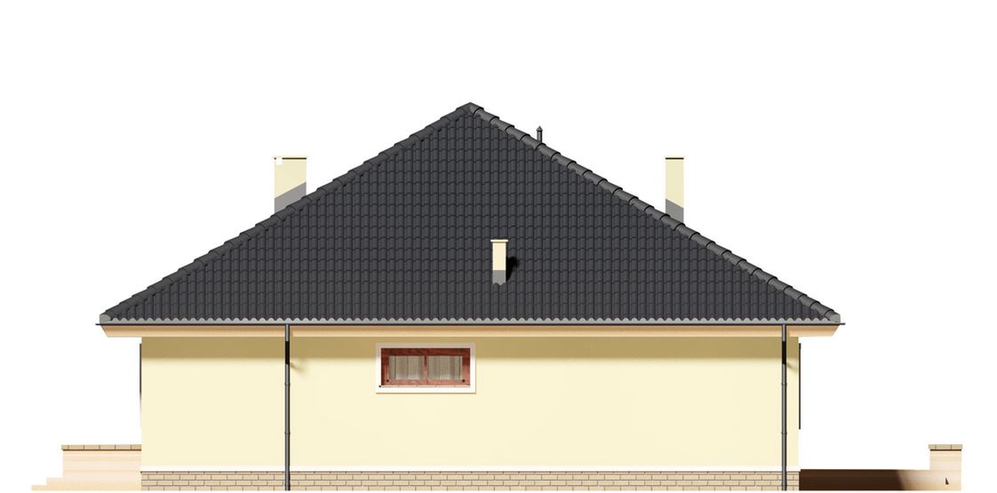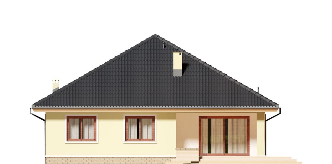 Graficzne opracowanie rzutów poglądowych widocznych na karcie projektu zostało wykonane przez Extradom.pl. Prezentowane przez Extradom.pl wizualizacje wykonane zostały przez autora projektu i należy poczytywać je jedynie za przykład i propozycję wykończenia, wizję architektoniczną autora projektu. Ostateczne wykończenie budynku może nastąpić na wiele sposobów. Szczegółowe rozwiązania zastosowane w oferowanej dokumentacji - w tym również ilość, lokalizacje i wygląd okien, drzwi, kominów - mogą w niewielkim stopniu różnić się od prezentowanej wizualizacji budynku.