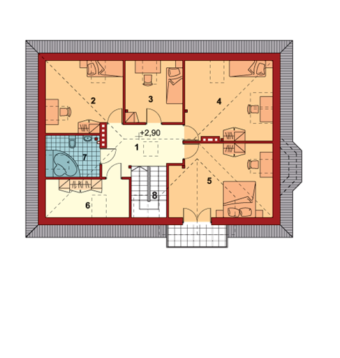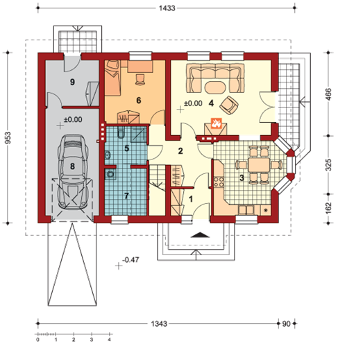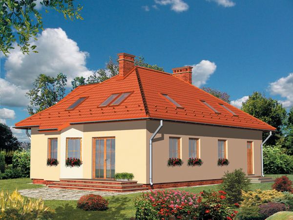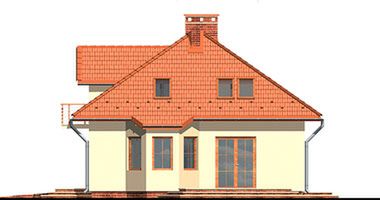 Graficzne opracowanie rzutów poglądowych widocznych na karcie projektu zostało wykonane przez Extradom.pl. Prezentowane przez Extradom.pl wizualizacje wykonane zostały przez autora projektu i należy poczytywać je jedynie za przykład i propozycję wykończenia, wizję architektoniczną autora projektu. Ostateczne wykończenie budynku może nastąpić na wiele sposobów. Szczegółowe rozwiązania zastosowane w oferowanej dokumentacji - w tym również ilość, lokalizacje i wygląd okien, drzwi, kominów - mogą w niewielkim stopniu różnić się od prezentowanej wizualizacji budynku.