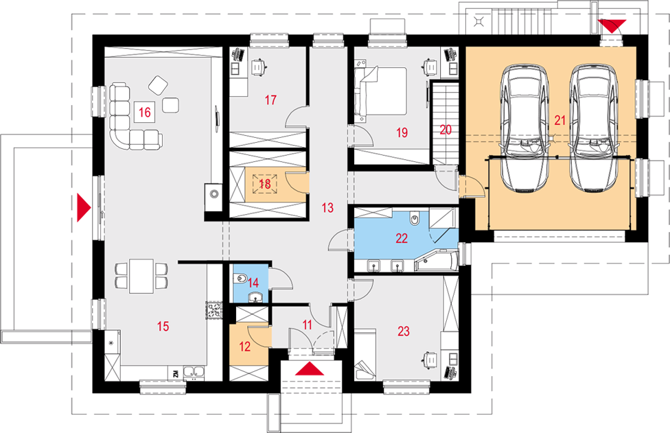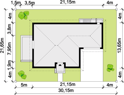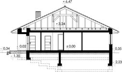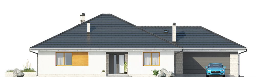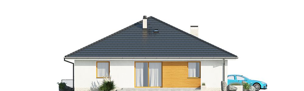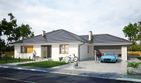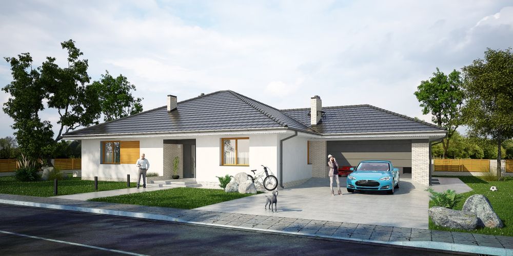 Graficzne opracowanie rzutów poglądowych widocznych na karcie projektu zostało wykonane przez Extradom.pl. Prezentowane przez Extradom.pl wizualizacje wykonane zostały przez autora projektu i należy poczytywać je jedynie za przykład i propozycję wykończenia, wizję architektoniczną autora projektu. Ostateczne wykończenie budynku może nastąpić na wiele sposobów. Szczegółowe rozwiązania zastosowane w oferowanej dokumentacji - w tym również ilość, lokalizacje i wygląd okien, drzwi, kominów - mogą w niewielkim stopniu różnić się od prezentowanej wizualizacji budynku.