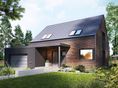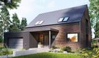 Zaproponowaliśmy w projekcie gotowym tradycyjną technologię budowy z bloczków gazobetonowych i z fasadami docieplonymi od zewnątrz styropianem. Wykończone są one płytkami klinkierowymi, ale jest możliwość realizacji domu w tańszym wariancie, tynkowanym. Strop nad parterem to gęstożebrowy Rector, a drewnianą, dwuspadową więźbę dachową pokrywa dachówka zakładkowa. Oferowane są dwie wersje projektu: z pompą ciepła oraz z piecem c.o. na gaz. Obie w wariancie podstawowym lub lustrzanym.