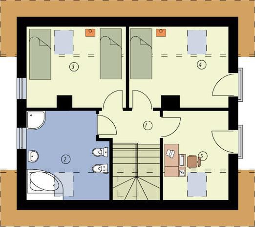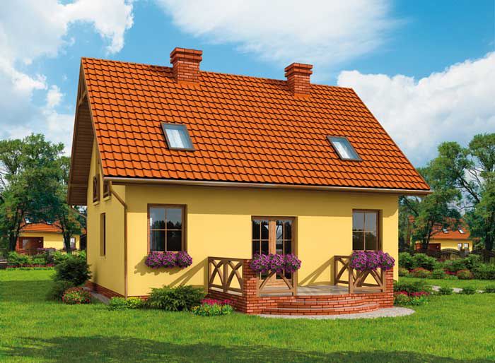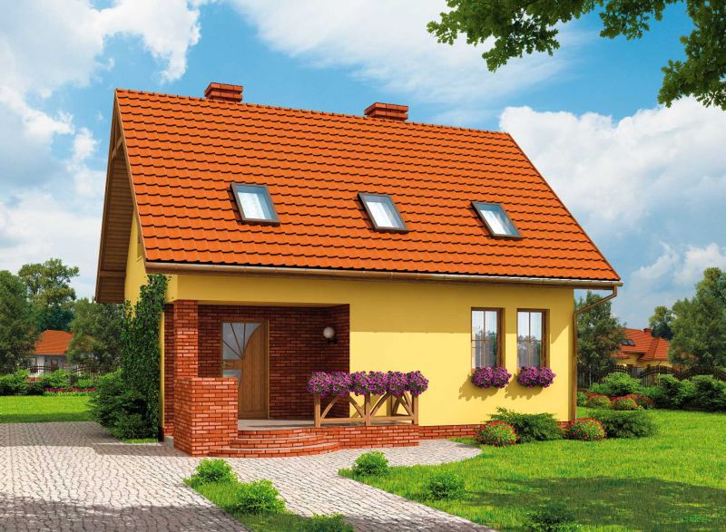 Graficzne opracowanie rzutów poglądowych widocznych na karcie projektu zostało wykonane przez Extradom.pl. Prezentowane przez Extradom.pl wizualizacje wykonane zostały przez autora projektu i należy poczytywać je jedynie za przykład i propozycję wykończenia, wizję architektoniczną autora projektu. Ostateczne wykończenie budynku może nastąpić na wiele sposobów. Szczegółowe rozwiązania zastosowane w oferowanej dokumentacji - w tym również ilość, lokalizacje i wygląd okien, drzwi, kominów - mogą w niewielkim stopniu różnić się od prezentowanej wizualizacji budynku.