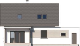 Graficzne opracowanie rzutów poglądowych widocznych na karcie projektu zostało wykonane przez Extradom.pl. Prezentowane przez Extradom.pl wizualizacje wykonane zostały przez autora projektu i należy poczytywać je jedynie za przykład i propozycję wykończenia, wizję architektoniczną autora projektu. Ostateczne wykończenie budynku może nastąpić na wiele sposobów. Szczegółowe rozwiązania zastosowane w oferowanej dokumentacji - w tym również ilość, lokalizacje i wygląd okien, drzwi, kominów - mogą w niewielkim stopniu różnić się od prezentowanej wizualizacji budynku.