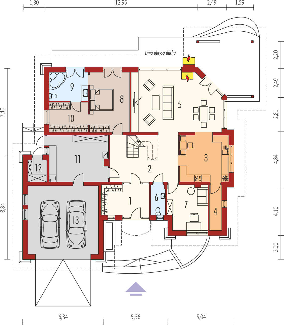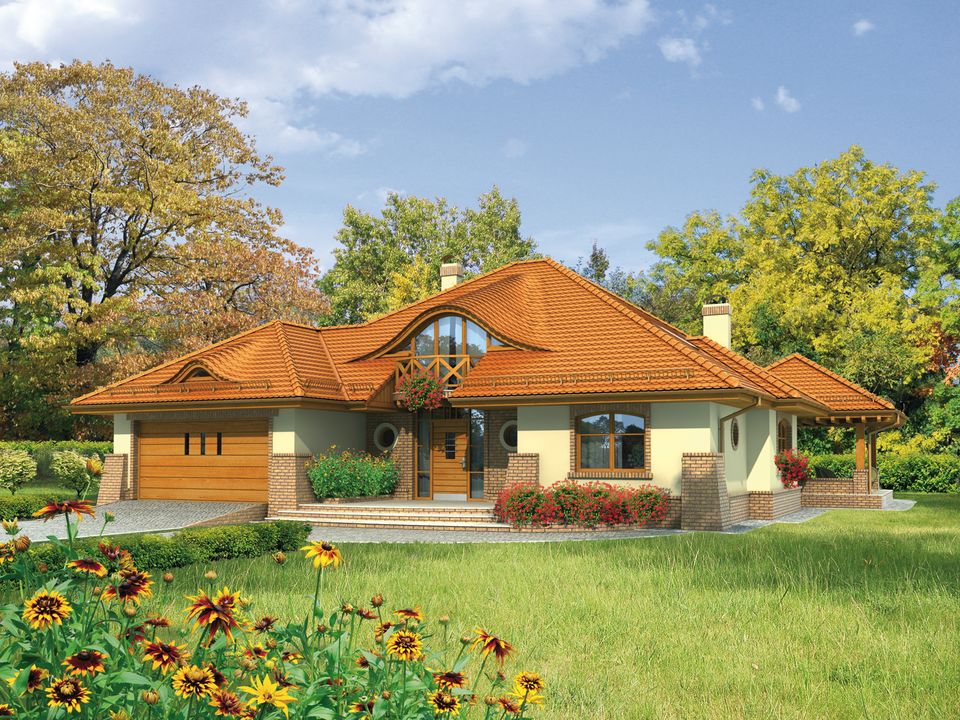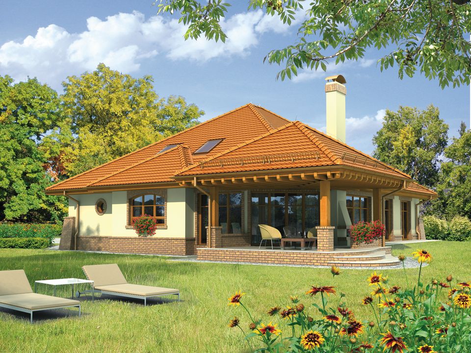 Graficzne opracowanie rzutów poglądowych widocznych na karcie projektu zostało wykonane przez Extradom.pl. Prezentowane przez Extradom.pl wizualizacje wykonane zostały przez autora projektu i należy poczytywać je jedynie za przykład i propozycję wykończenia, wizję architektoniczną autora projektu. Ostateczne wykończenie budynku może nastąpić na wiele sposobów. Szczegółowe rozwiązania zastosowane w oferowanej dokumentacji - w tym również ilość, lokalizacje i wygląd okien, drzwi, kominów - mogą w niewielkim stopniu różnić się od prezentowanej wizualizacji budynku.