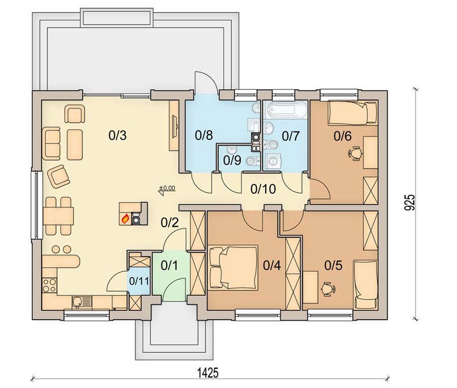 Graficzne opracowanie rzutów poglądowych widocznych na karcie projektu zostało wykonane przez Extradom.pl. Prezentowane przez Extradom.pl wizualizacje wykonane zostały przez autora projektu i należy poczytywać je jedynie za przykład i propozycję wykończenia, wizję architektoniczną autora projektu. Ostateczne wykończenie budynku może nastąpić na wiele sposobów. Szczegółowe rozwiązania zastosowane w oferowanej dokumentacji - w tym również ilość, lokalizacje i wygląd okien, drzwi, kominów - mogą w niewielkim stopniu różnić się od prezentowanej wizualizacji budynku.