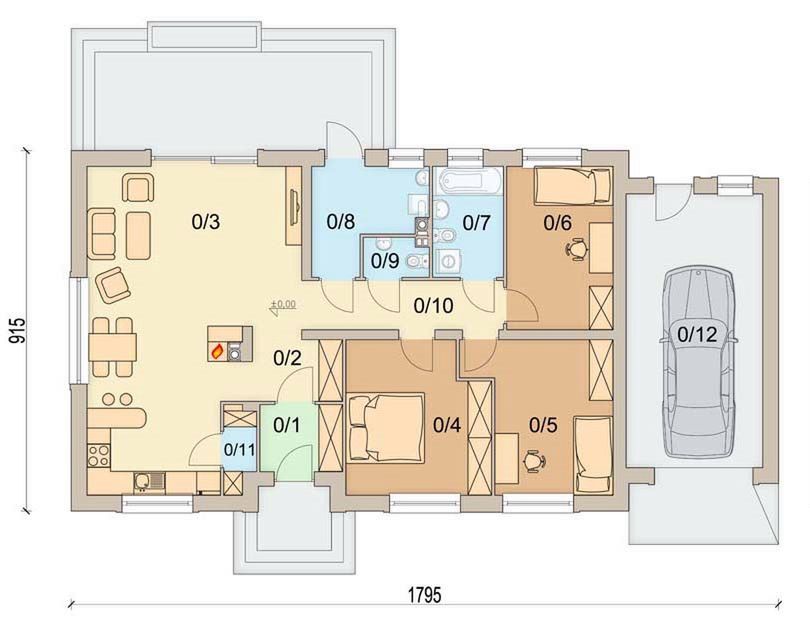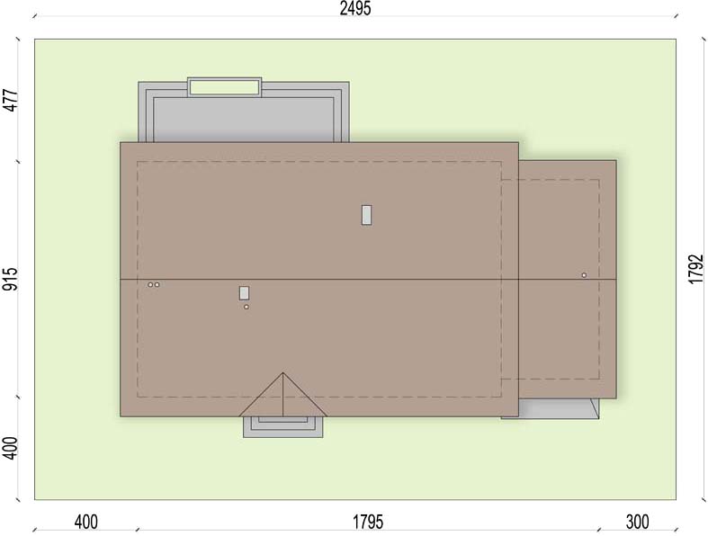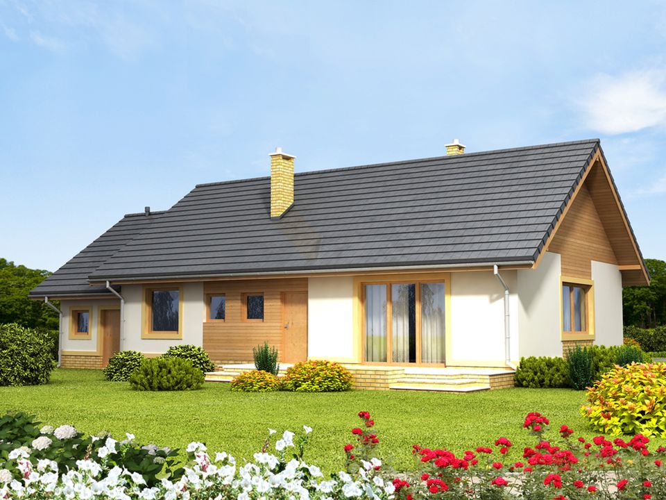 Graficzne opracowanie rzutów poglądowych widocznych na karcie projektu zostało wykonane przez Extradom.pl. Prezentowane przez Extradom.pl wizualizacje wykonane zostały przez autora projektu i należy poczytywać je jedynie za przykład i propozycję wykończenia, wizję architektoniczną autora projektu. Ostateczne wykończenie budynku może nastąpić na wiele sposobów. Szczegółowe rozwiązania zastosowane w oferowanej dokumentacji - w tym również ilość, lokalizacje i wygląd okien, drzwi, kominów - mogą w niewielkim stopniu różnić się od prezentowanej wizualizacji budynku.