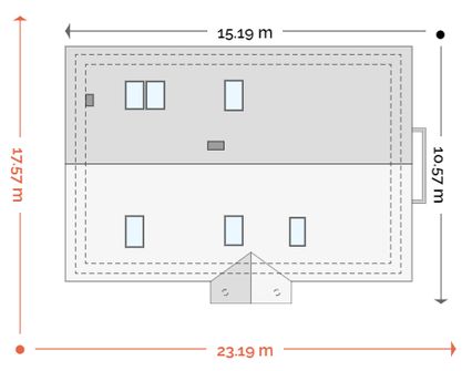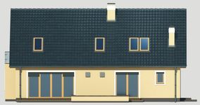 Graficzne opracowanie rzutów poglądowych widocznych na karcie projektu zostało wykonane przez Extradom.pl. Prezentowane przez Extradom.pl wizualizacje wykonane zostały przez autora projektu i należy poczytywać je jedynie za przykład i propozycję wykończenia, wizję architektoniczną autora projektu. Ostateczne wykończenie budynku może nastąpić na wiele sposobów. Szczegółowe rozwiązania zastosowane w oferowanej dokumentacji - w tym również ilość, lokalizacje i wygląd okien, drzwi, kominów - mogą w niewielkim stopniu różnić się od prezentowanej wizualizacji budynku.