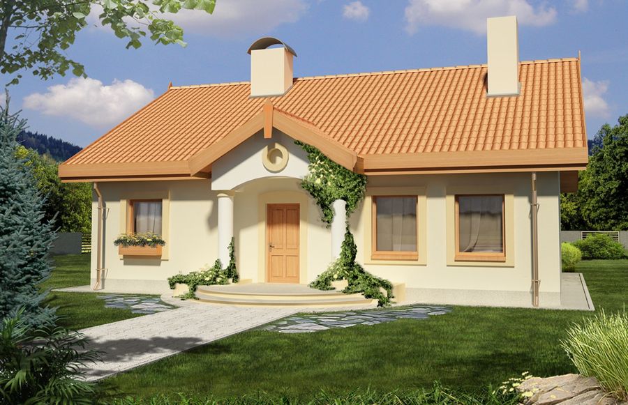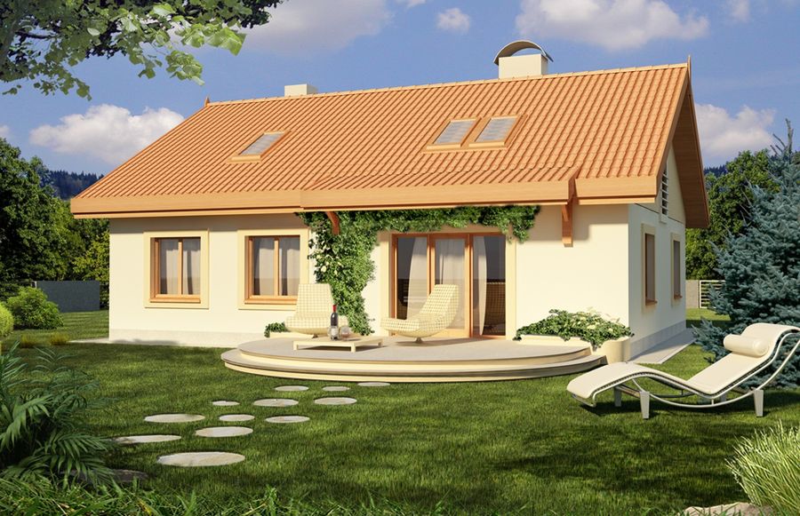 Graficzne opracowanie rzutów poglądowych widocznych na karcie projektu zostało wykonane przez Extradom.pl. Prezentowane przez Extradom.pl wizualizacje wykonane zostały przez autora projektu i należy poczytywać je jedynie za przykład i propozycję wykończenia, wizję architektoniczną autora projektu. Ostateczne wykończenie budynku może nastąpić na wiele sposobów. Szczegółowe rozwiązania zastosowane w oferowanej dokumentacji - w tym również ilość, lokalizacje i wygląd okien, drzwi, kominów - mogą w niewielkim stopniu różnić się od prezentowanej wizualizacji budynku.