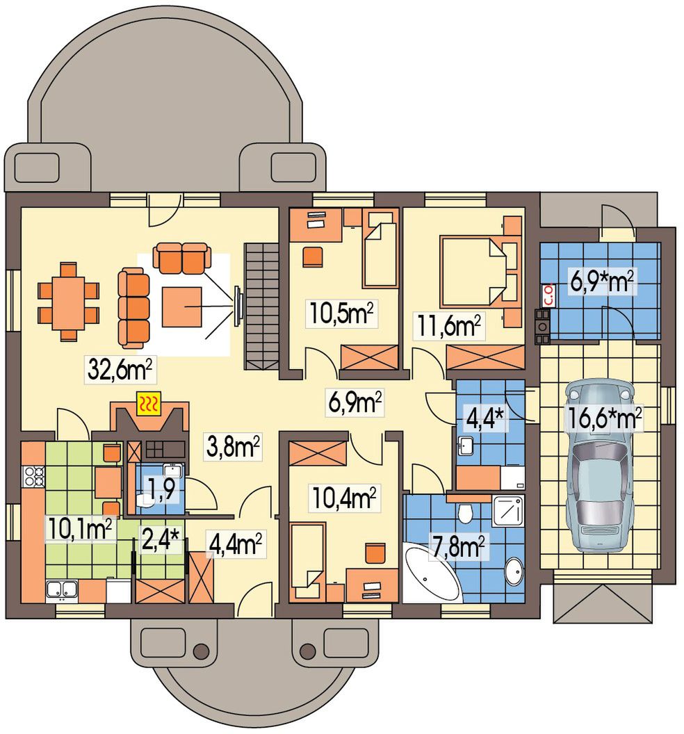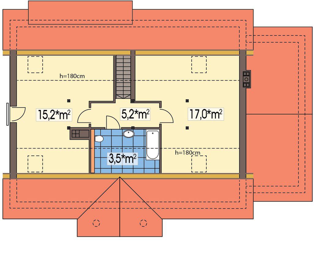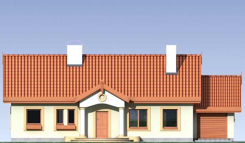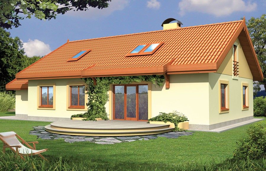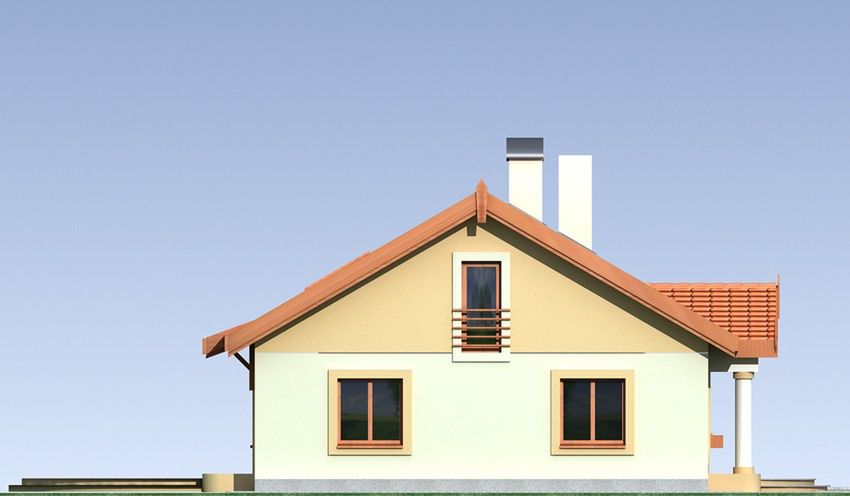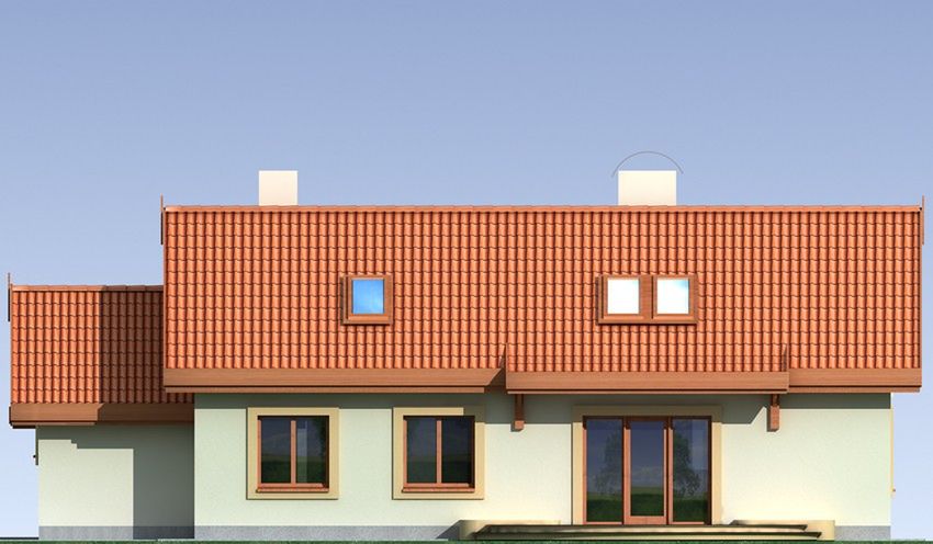 Graficzne opracowanie rzutów poglądowych widocznych na karcie projektu zostało wykonane przez Extradom.pl. Prezentowane przez Extradom.pl wizualizacje wykonane zostały przez autora projektu i należy poczytywać je jedynie za przykład i propozycję wykończenia, wizję architektoniczną autora projektu. Ostateczne wykończenie budynku może nastąpić na wiele sposobów. Szczegółowe rozwiązania zastosowane w oferowanej dokumentacji - w tym również ilość, lokalizacje i wygląd okien, drzwi, kominów - mogą w niewielkim stopniu różnić się od prezentowanej wizualizacji budynku.