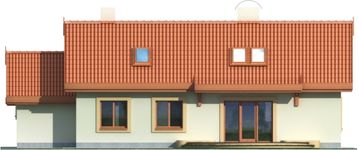 Graficzne opracowanie rzutów poglądowych widocznych na karcie projektu zostało wykonane przez Extradom.pl. Prezentowane przez Extradom.pl wizualizacje wykonane zostały przez autora projektu i należy poczytywać je jedynie za przykład i propozycję wykończenia, wizję architektoniczną autora projektu. Ostateczne wykończenie budynku może nastąpić na wiele sposobów. Szczegółowe rozwiązania zastosowane w oferowanej dokumentacji - w tym również ilość, lokalizacje i wygląd okien, drzwi, kominów - mogą w niewielkim stopniu różnić się od prezentowanej wizualizacji budynku.