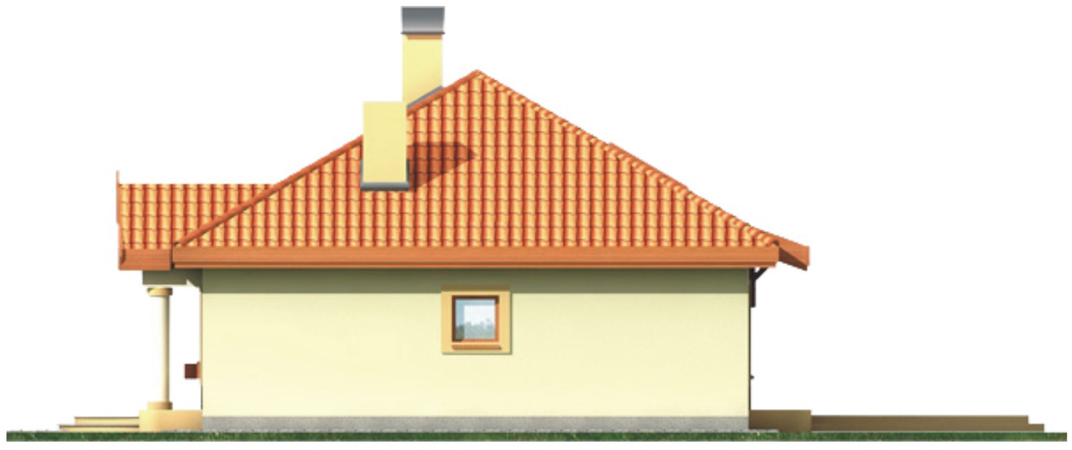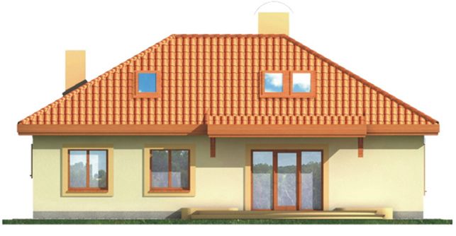 Graficzne opracowanie rzutów poglądowych widocznych na karcie projektu zostało wykonane przez Extradom.pl. Prezentowane przez Extradom.pl wizualizacje wykonane zostały przez autora projektu i należy poczytywać je jedynie za przykład i propozycję wykończenia, wizję architektoniczną autora projektu. Ostateczne wykończenie budynku może nastąpić na wiele sposobów. Szczegółowe rozwiązania zastosowane w oferowanej dokumentacji - w tym również ilość, lokalizacje i wygląd okien, drzwi, kominów - mogą w niewielkim stopniu różnić się od prezentowanej wizualizacji budynku.