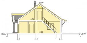 Graficzne opracowanie rzutów poglądowych widocznych na karcie projektu zostało wykonane przez Extradom.pl. Prezentowane przez Extradom.pl wizualizacje wykonane zostały przez autora projektu i należy poczytywać je jedynie za przykład i propozycję wykończenia, wizję architektoniczną autora projektu. Ostateczne wykończenie budynku może nastąpić na wiele sposobów. Szczegółowe rozwiązania zastosowane w oferowanej dokumentacji - w tym również ilość, lokalizacje i wygląd okien, drzwi, kominów - mogą w niewielkim stopniu różnić się od prezentowanej wizualizacji budynku.