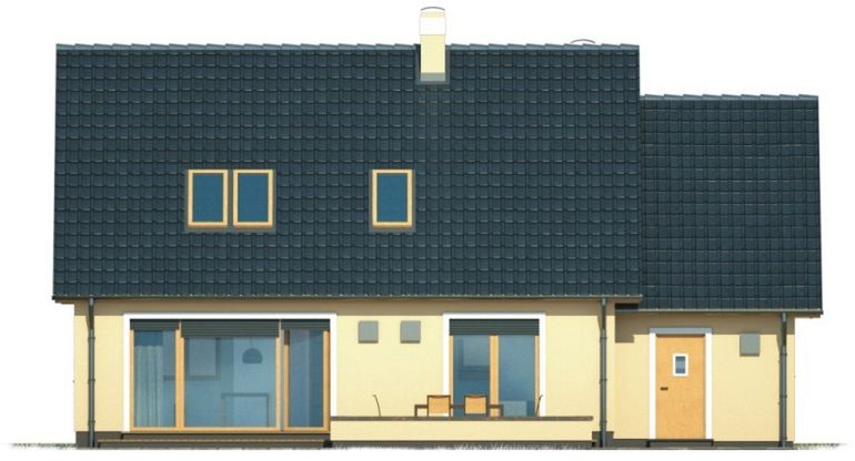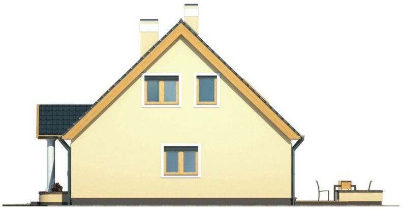 Graficzne opracowanie rzutów poglądowych widocznych na karcie projektu zostało wykonane przez Extradom.pl. Prezentowane przez Extradom.pl wizualizacje wykonane zostały przez autora projektu i należy poczytywać je jedynie za przykład i propozycję wykończenia, wizję architektoniczną autora projektu. Ostateczne wykończenie budynku może nastąpić na wiele sposobów. Szczegółowe rozwiązania zastosowane w oferowanej dokumentacji - w tym również ilość, lokalizacje i wygląd okien, drzwi, kominów - mogą w niewielkim stopniu różnić się od prezentowanej wizualizacji budynku.
