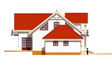 Graficzne opracowanie rzutów poglądowych widocznych na karcie projektu zostało wykonane przez Extradom.pl. Prezentowane przez Extradom.pl wizualizacje wykonane zostały przez autora projektu i należy poczytywać je jedynie za przykład i propozycję wykończenia, wizję architektoniczną autora projektu. Ostateczne wykończenie budynku może nastąpić na wiele sposobów. Szczegółowe rozwiązania zastosowane w oferowanej dokumentacji - w tym również ilość, lokalizacje i wygląd okien, drzwi, kominów - mogą w niewielkim stopniu różnić się od prezentowanej wizualizacji budynku.