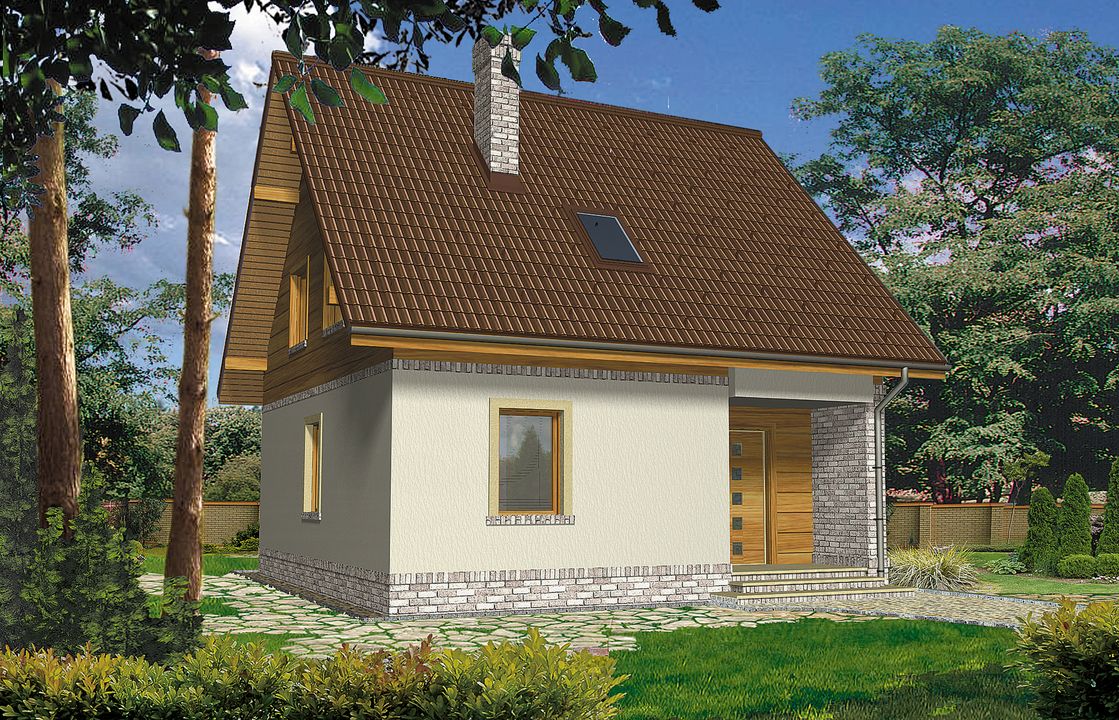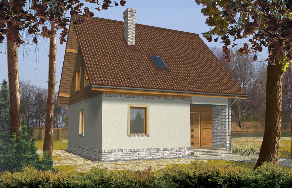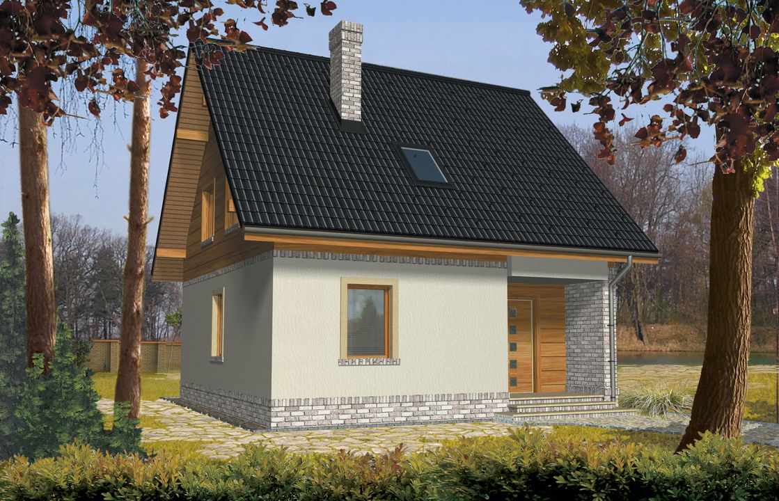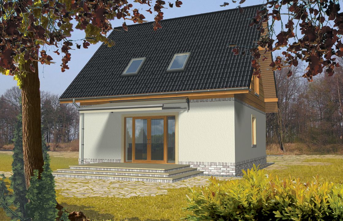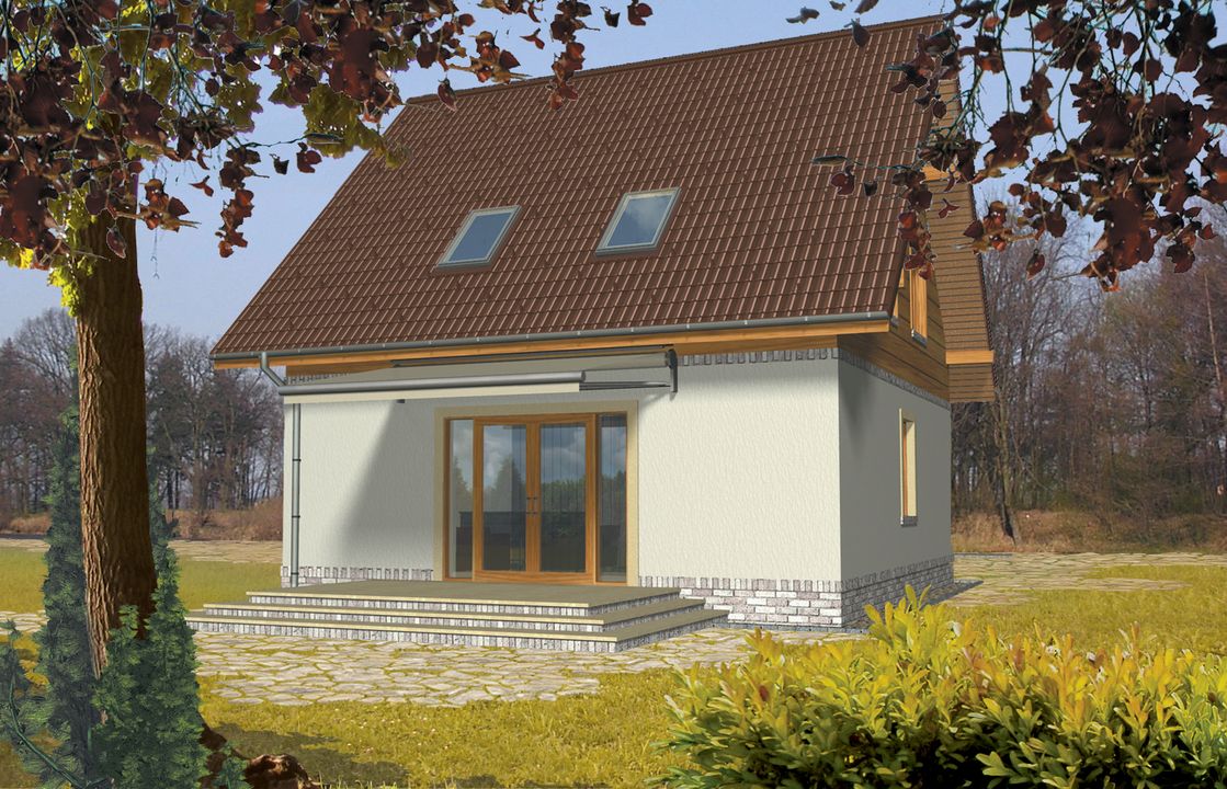 Graficzne opracowanie rzutów poglądowych widocznych na karcie projektu zostało wykonane przez Extradom.pl. Prezentowane przez Extradom.pl wizualizacje wykonane zostały przez autora projektu i należy poczytywać je jedynie za przykład i propozycję wykończenia, wizję architektoniczną autora projektu. Ostateczne wykończenie budynku może nastąpić na wiele sposobów. Szczegółowe rozwiązania zastosowane w oferowanej dokumentacji - w tym również ilość, lokalizacje i wygląd okien, drzwi, kominów - mogą w niewielkim stopniu różnić się od prezentowanej wizualizacji budynku.