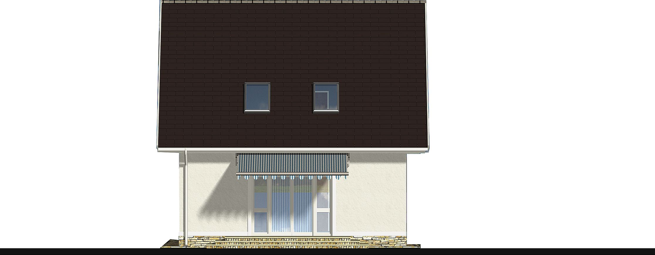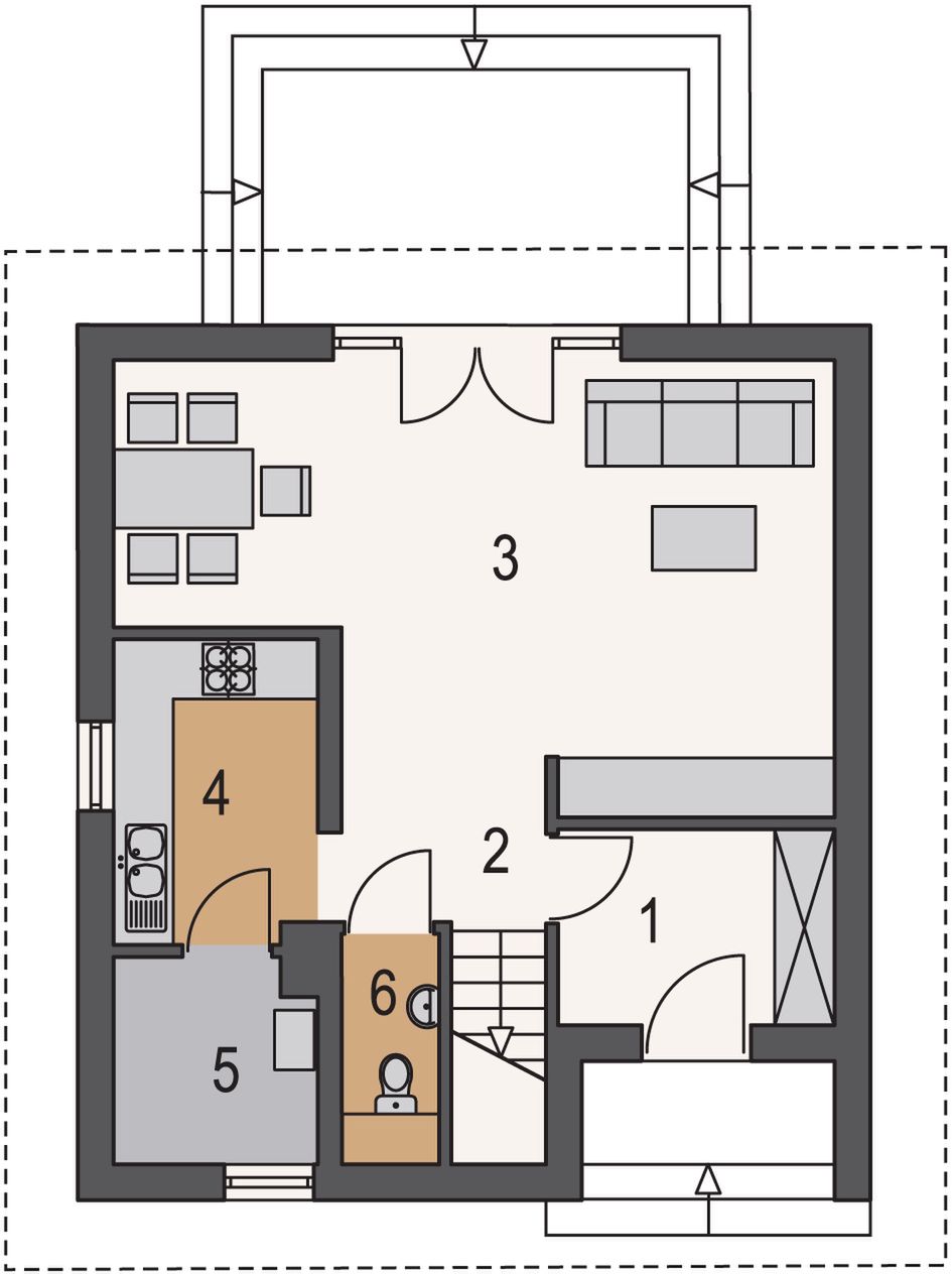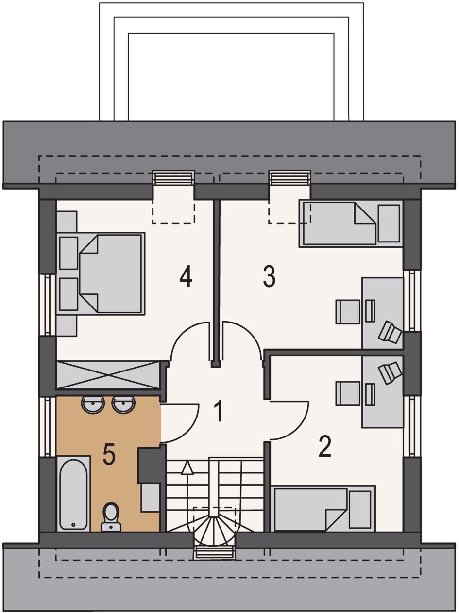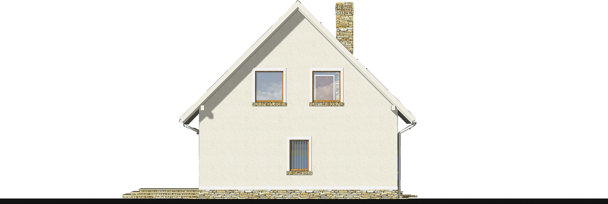Graficzne opracowanie rzutów poglądowych widocznych na karcie projektu zostało wykonane przez Extradom.pl. Prezentowane przez Extradom.pl wizualizacje wykonane zostały przez autora projektu i należy poczytywać je jedynie za przykład i propozycję wykończenia, wizję architektoniczną autora projektu. Ostateczne wykończenie budynku może nastąpić na wiele sposobów. Szczegółowe rozwiązania zastosowane w oferowanej dokumentacji - w tym również ilość, lokalizacje i wygląd okien, drzwi, kominów - mogą w niewielkim stopniu różnić się od prezentowanej wizualizacji budynku.