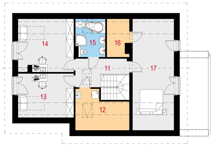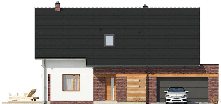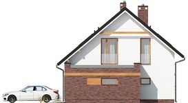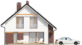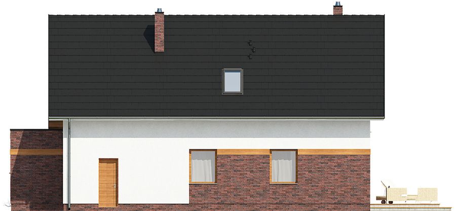 Graficzne opracowanie rzutów poglądowych widocznych na karcie projektu zostało wykonane przez Extradom.pl. Prezentowane przez Extradom.pl wizualizacje wykonane zostały przez autora projektu i należy poczytywać je jedynie za przykład i propozycję wykończenia, wizję architektoniczną autora projektu. Ostateczne wykończenie budynku może nastąpić na wiele sposobów. Szczegółowe rozwiązania zastosowane w oferowanej dokumentacji - w tym również ilość, lokalizacje i wygląd okien, drzwi, kominów - mogą w niewielkim stopniu różnić się od prezentowanej wizualizacji budynku.