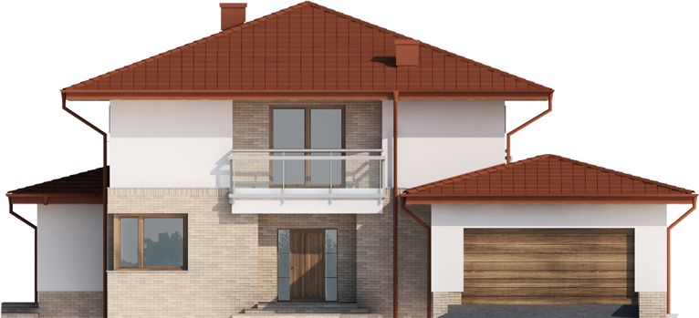 Fundamenty: bezpośrednie, na ławach i stopach fundamentowych. Ściany zewnętrzne: bloczki z bet. komórkowego - 24 cm + styropian TERMO ORGANIKA typ Fasada 12 cm. Ściany wewnętrzne: bloczki wapienno-piaskowe - 24 cm (działowe - 12 cm). Strop: żelbetowy monolityczny gr. 20 cm nad parterem oraz drewniany nad piętrem, garażem i w rejonach podcieni. Elewacje: tynk - System Platinum firmy TERMO ORGANIKA, płytki klinkierowe, deska elewacyjna. Pokrycie dachu: dachówka cementowa. Konstrukcja dachu: drewniana, zasadniczymi elementami są krokwie narożne. Schody wewnętrzne: żelbetowe monolityczne zabiegowe. Ogrzewanie: kocioł gazowy kondensacyjny; dodatkowe źródło ciepła - kominek z płaszczem wodnym Projekt zgodny z wymaganiami WT2017..