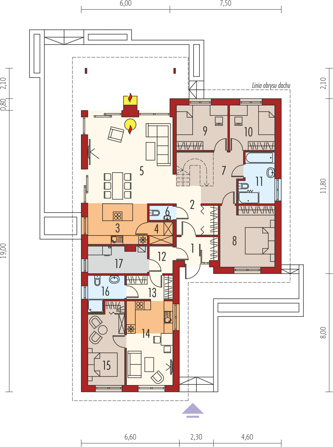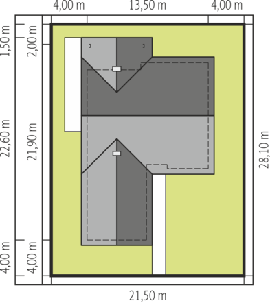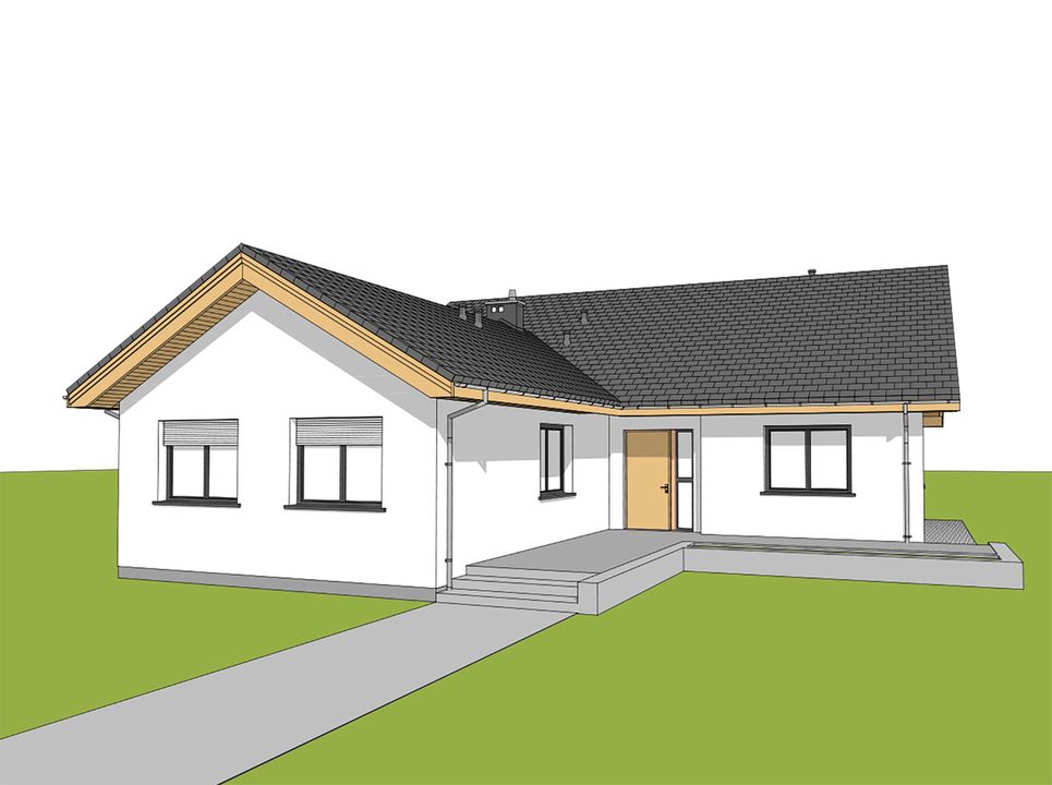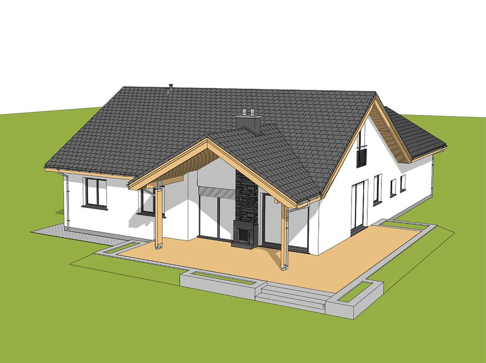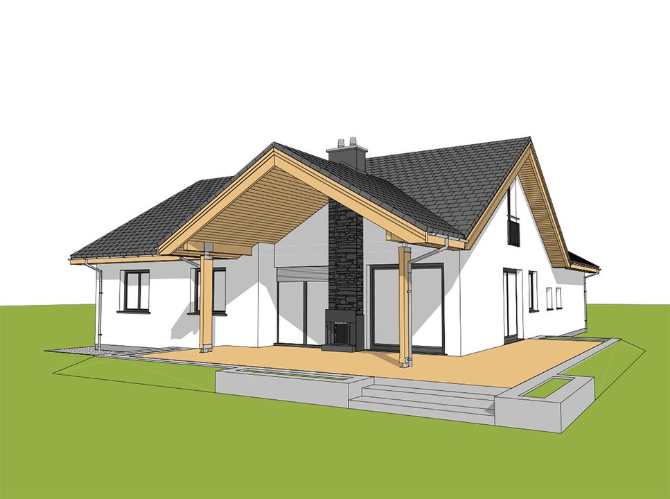 Graficzne opracowanie rzutów poglądowych widocznych na karcie projektu zostało wykonane przez Extradom.pl. Prezentowane przez Extradom.pl wizualizacje wykonane zostały przez autora projektu i należy poczytywać je jedynie za przykład i propozycję wykończenia, wizję architektoniczną autora projektu. Ostateczne wykończenie budynku może nastąpić na wiele sposobów. Szczegółowe rozwiązania zastosowane w oferowanej dokumentacji - w tym również ilość, lokalizacje i wygląd okien, drzwi, kominów - mogą w niewielkim stopniu różnić się od prezentowanej wizualizacji budynku.