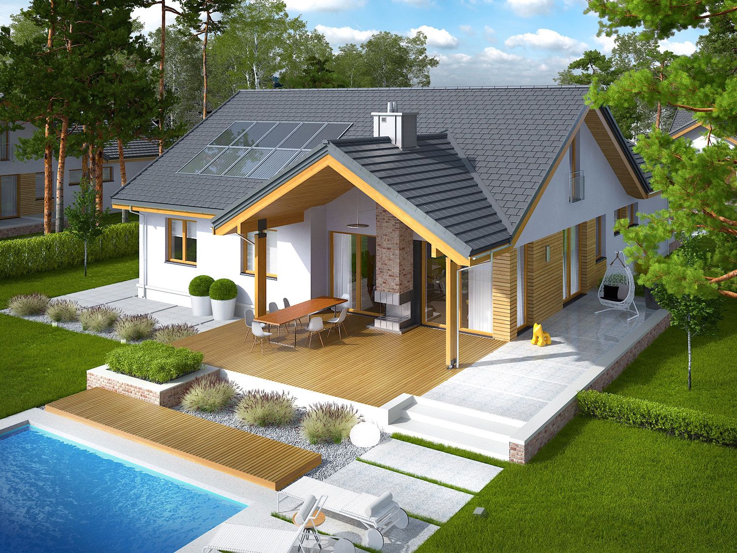 Ogrzewanie podłogowe (na całej powierzchni domu lub w jej części, szczegóły u doradcy) Kolektory słoneczne