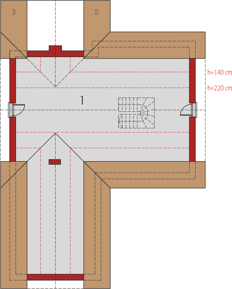 Graficzne opracowanie rzutów poglądowych widocznych na karcie projektu zostało wykonane przez Extradom.pl. Prezentowane przez Extradom.pl wizualizacje wykonane zostały przez autora projektu i należy poczytywać je jedynie za przykład i propozycję wykończenia, wizję architektoniczną autora projektu. Ostateczne wykończenie budynku może nastąpić na wiele sposobów. Szczegółowe rozwiązania zastosowane w oferowanej dokumentacji - w tym również ilość, lokalizacje i wygląd okien, drzwi, kominów - mogą w niewielkim stopniu różnić się od prezentowanej wizualizacji budynku.