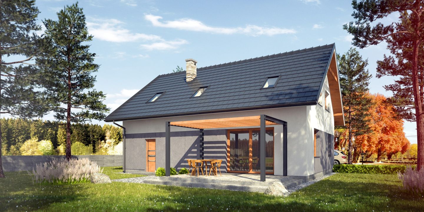Projekt domu Simplex II G1 to idealna propozycja dla 3-4 osobowej rodziny, która szuka funkcjonalnego domu z poddaszem użytkowym i garażem w bryle. Kompaktowa powierzchnia blisko 100 m² została zaprojektowana z myślą o maksymalnym komforcie i niskich kosztach budowy, łącząc tradycyjny styl z nowoczesnymi rozwiązaniami.