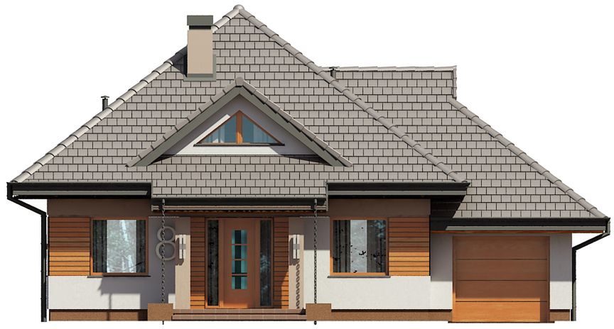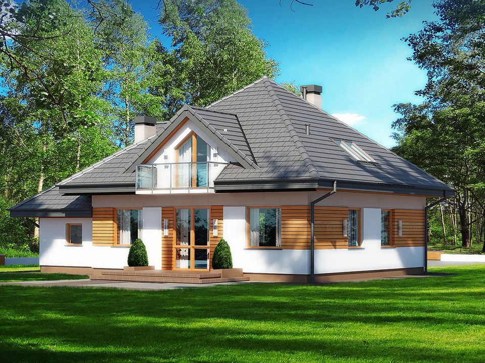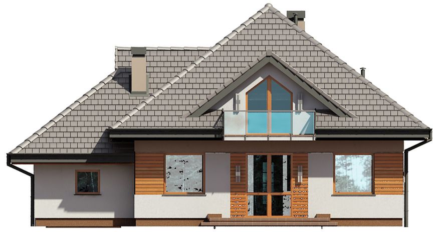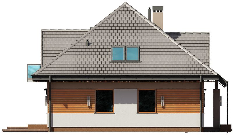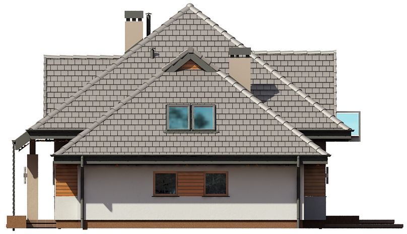 Graficzne opracowanie rzutów poglądowych widocznych na karcie projektu zostało wykonane przez Extradom.pl. Prezentowane przez Extradom.pl wizualizacje wykonane zostały przez autora projektu i należy poczytywać je jedynie za przykład i propozycję wykończenia, wizję architektoniczną autora projektu. Ostateczne wykończenie budynku może nastąpić na wiele sposobów. Szczegółowe rozwiązania zastosowane w oferowanej dokumentacji - w tym również ilość, lokalizacje i wygląd okien, drzwi, kominów - mogą w niewielkim stopniu różnić się od prezentowanej wizualizacji budynku.