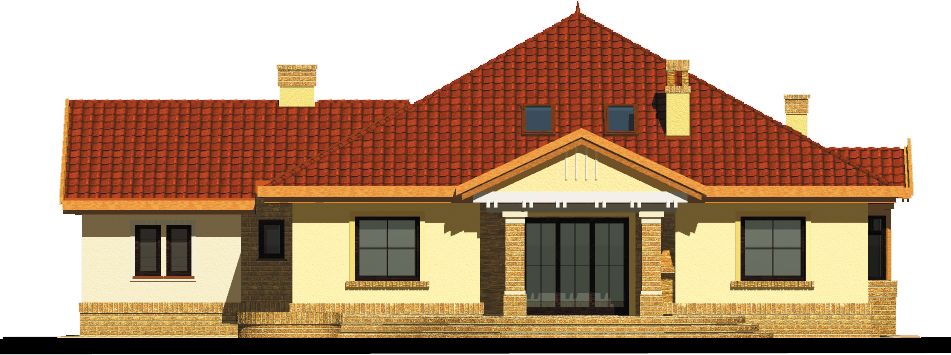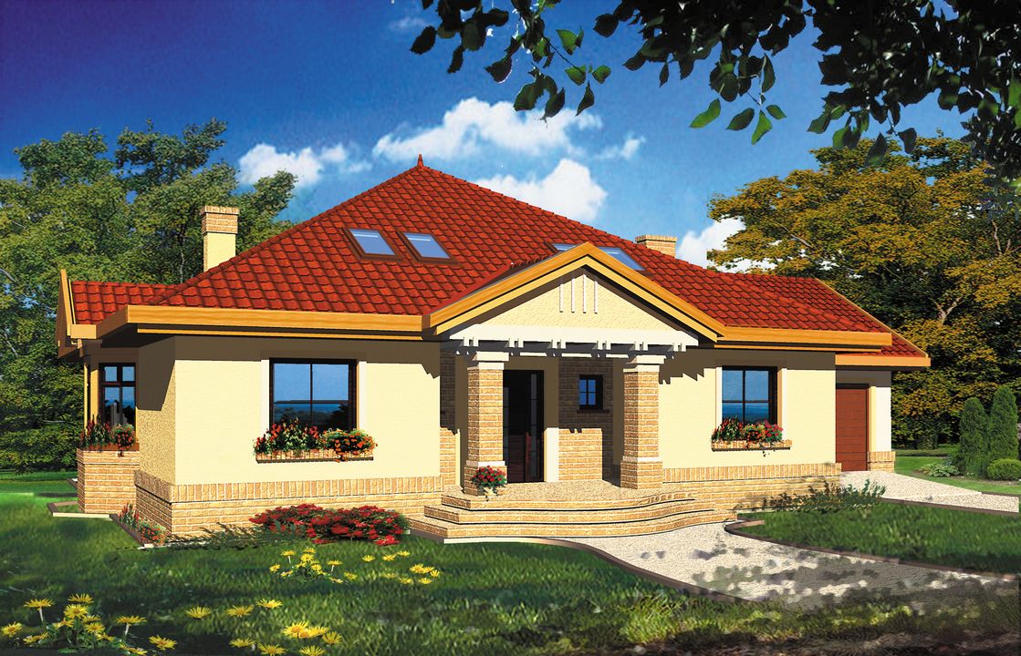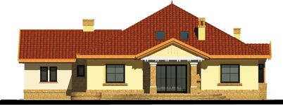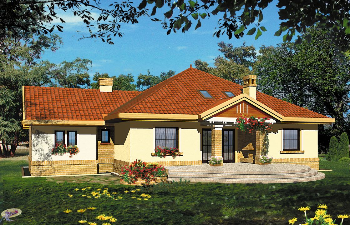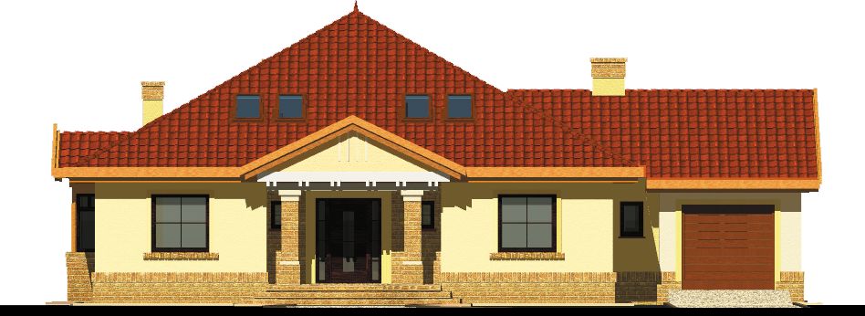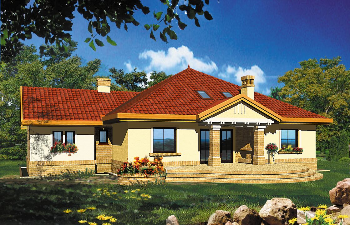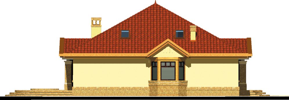 Graficzne opracowanie rzutów poglądowych widocznych na karcie projektu zostało wykonane przez Extradom.pl. Prezentowane przez Extradom.pl wizualizacje wykonane zostały przez autora projektu i należy poczytywać je jedynie za przykład i propozycję wykończenia, wizję architektoniczną autora projektu. Ostateczne wykończenie budynku może nastąpić na wiele sposobów. Szczegółowe rozwiązania zastosowane w oferowanej dokumentacji - w tym również ilość, lokalizacje i wygląd okien, drzwi, kominów - mogą w niewielkim stopniu różnić się od prezentowanej wizualizacji budynku.