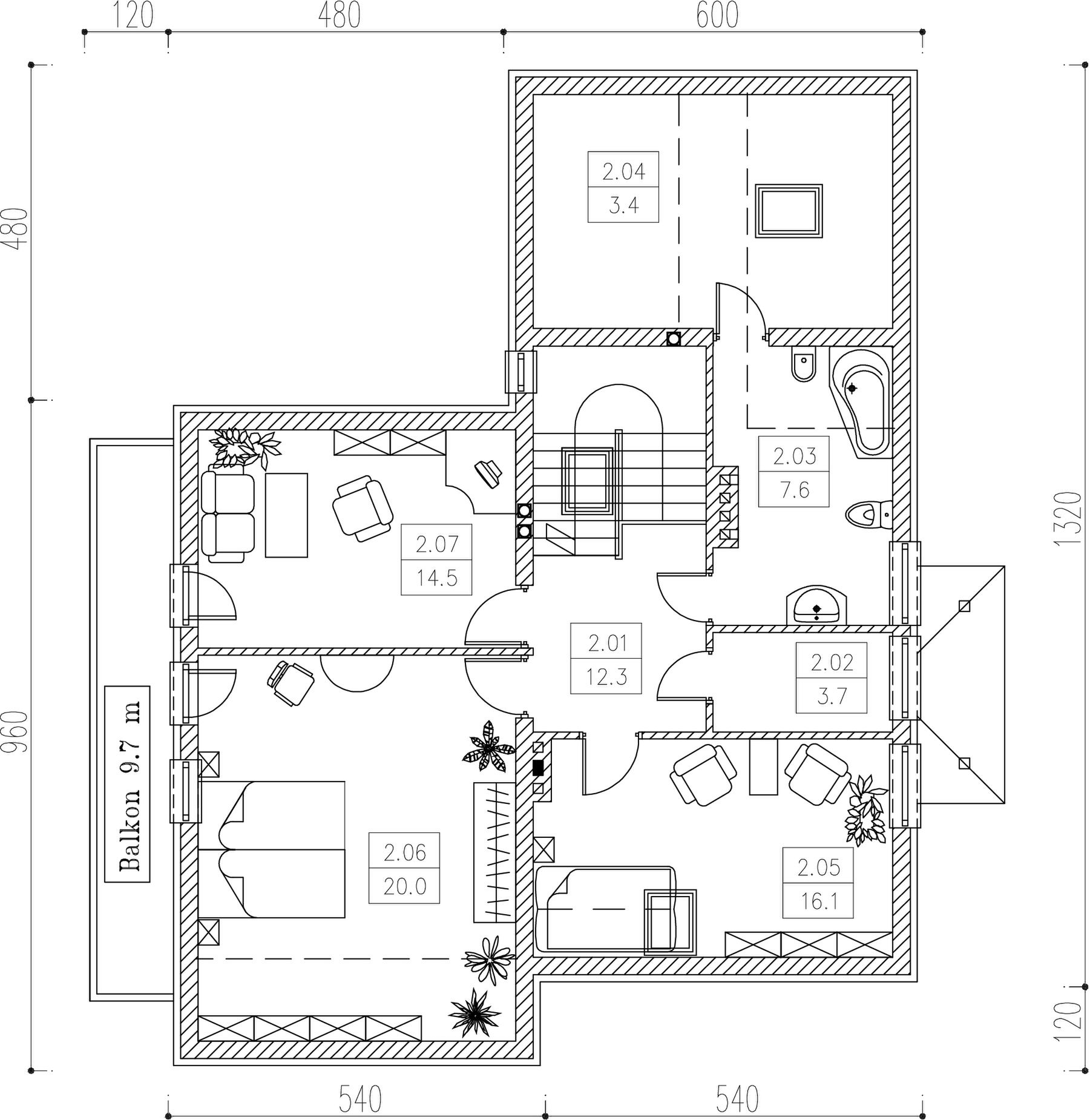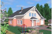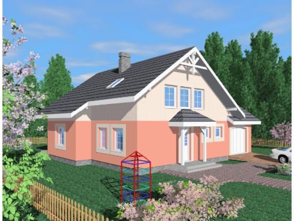 Graficzne opracowanie rzutów poglądowych widocznych na karcie projektu zostało wykonane przez Extradom.pl. Prezentowane przez Extradom.pl wizualizacje wykonane zostały przez autora projektu i należy poczytywać je jedynie za przykład i propozycję wykończenia, wizję architektoniczną autora projektu. Ostateczne wykończenie budynku może nastąpić na wiele sposobów. Szczegółowe rozwiązania zastosowane w oferowanej dokumentacji - w tym również ilość, lokalizacje i wygląd okien, drzwi, kominów - mogą w niewielkim stopniu różnić się od prezentowanej wizualizacji budynku.