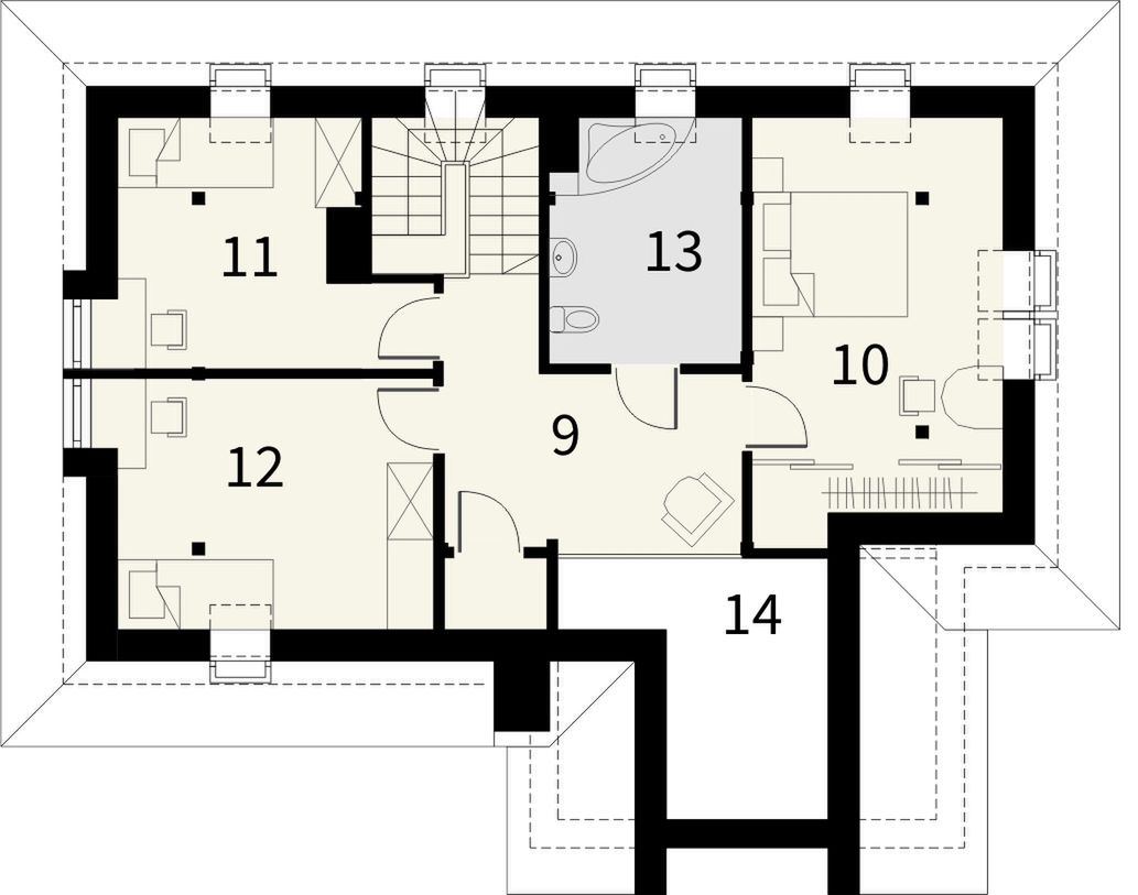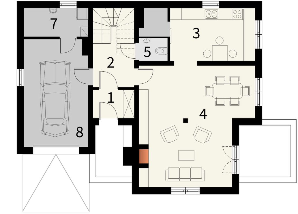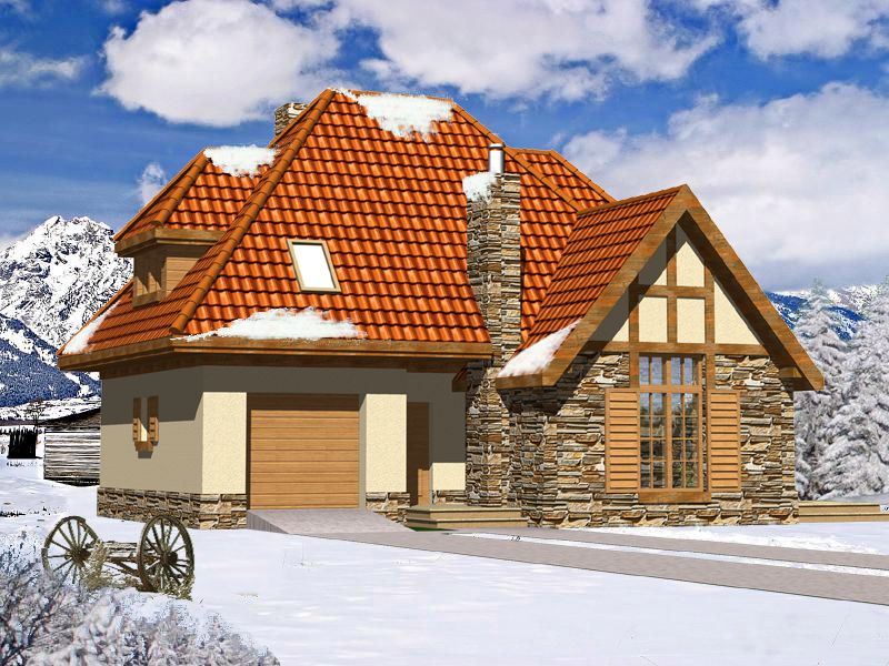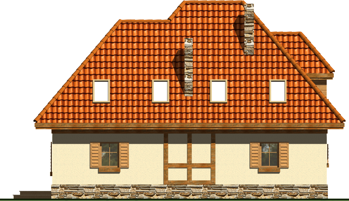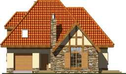 Graficzne opracowanie rzutów poglądowych widocznych na karcie projektu zostało wykonane przez Extradom.pl. Prezentowane przez Extradom.pl wizualizacje wykonane zostały przez autora projektu i należy poczytywać je jedynie za przykład i propozycję wykończenia, wizję architektoniczną autora projektu. Ostateczne wykończenie budynku może nastąpić na wiele sposobów. Szczegółowe rozwiązania zastosowane w oferowanej dokumentacji - w tym również ilość, lokalizacje i wygląd okien, drzwi, kominów - mogą w niewielkim stopniu różnić się od prezentowanej wizualizacji budynku.