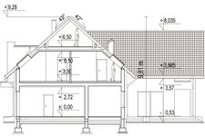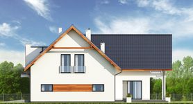 Graficzne opracowanie rzutów poglądowych widocznych na karcie projektu zostało wykonane przez Extradom.pl. Prezentowane przez Extradom.pl wizualizacje wykonane zostały przez autora projektu i należy poczytywać je jedynie za przykład i propozycję wykończenia, wizję architektoniczną autora projektu. Ostateczne wykończenie budynku może nastąpić na wiele sposobów. Szczegółowe rozwiązania zastosowane w oferowanej dokumentacji - w tym również ilość, lokalizacje i wygląd okien, drzwi, kominów - mogą w niewielkim stopniu różnić się od prezentowanej wizualizacji budynku.