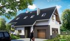 Graficzne opracowanie rzutów poglądowych widocznych na karcie projektu zostało wykonane przez Extradom.pl. Prezentowane przez Extradom.pl wizualizacje wykonane zostały przez autora projektu i należy poczytywać je jedynie za przykład i propozycję wykończenia, wizję architektoniczną autora projektu. Ostateczne wykończenie budynku może nastąpić na wiele sposobów. Szczegółowe rozwiązania zastosowane w oferowanej dokumentacji - w tym również ilość, lokalizacje i wygląd okien, drzwi, kominów - mogą w niewielkim stopniu różnić się od prezentowanej wizualizacji budynku.
