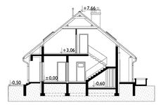 Graficzne opracowanie rzutów poglądowych widocznych na karcie projektu zostało wykonane przez Extradom.pl. Prezentowane przez Extradom.pl wizualizacje wykonane zostały przez autora projektu i należy poczytywać je jedynie za przykład i propozycję wykończenia, wizję architektoniczną autora projektu. Ostateczne wykończenie budynku może nastąpić na wiele sposobów. Szczegółowe rozwiązania zastosowane w oferowanej dokumentacji - w tym również ilość, lokalizacje i wygląd okien, drzwi, kominów - mogą w niewielkim stopniu różnić się od prezentowanej wizualizacji budynku.
