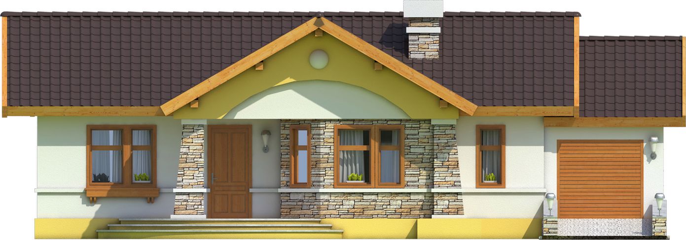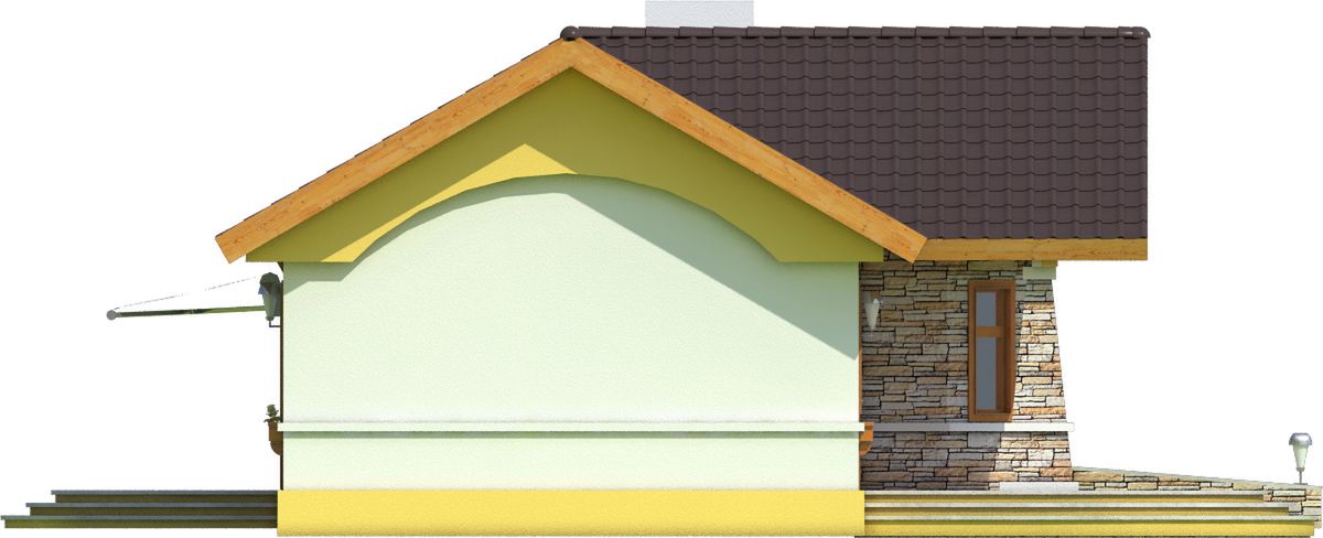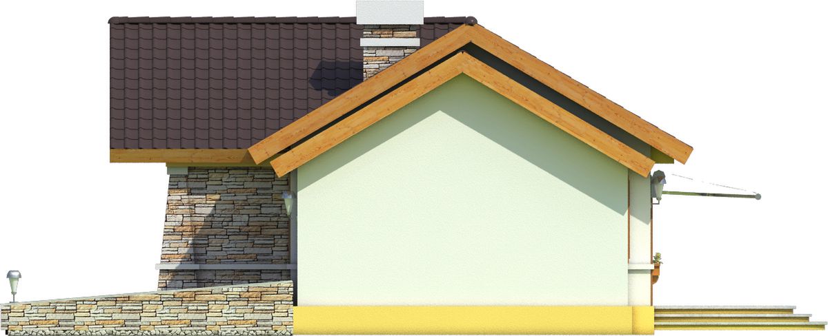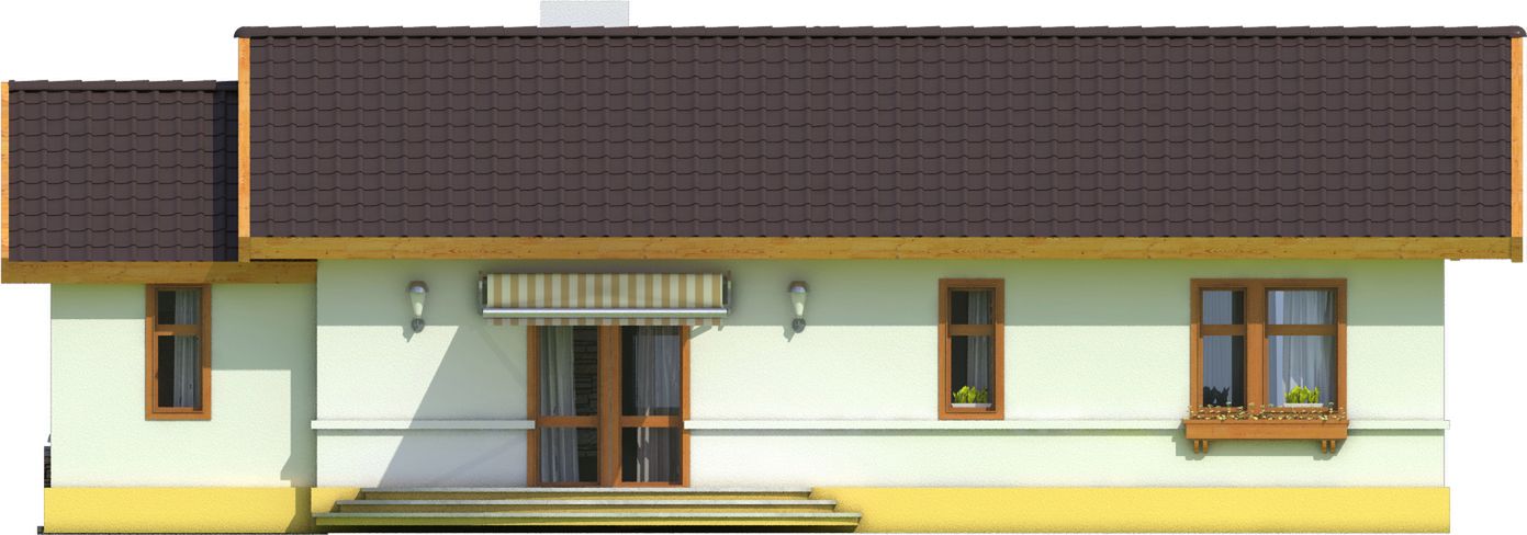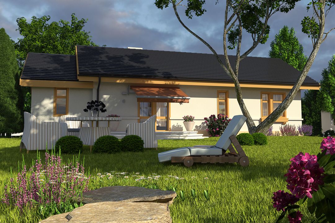 Graficzne opracowanie rzutów poglądowych widocznych na karcie projektu zostało wykonane przez Extradom.pl. Prezentowane przez Extradom.pl wizualizacje wykonane zostały przez autora projektu i należy poczytywać je jedynie za przykład i propozycję wykończenia, wizję architektoniczną autora projektu. Ostateczne wykończenie budynku może nastąpić na wiele sposobów. Szczegółowe rozwiązania zastosowane w oferowanej dokumentacji - w tym również ilość, lokalizacje i wygląd okien, drzwi, kominów - mogą w niewielkim stopniu różnić się od prezentowanej wizualizacji budynku.