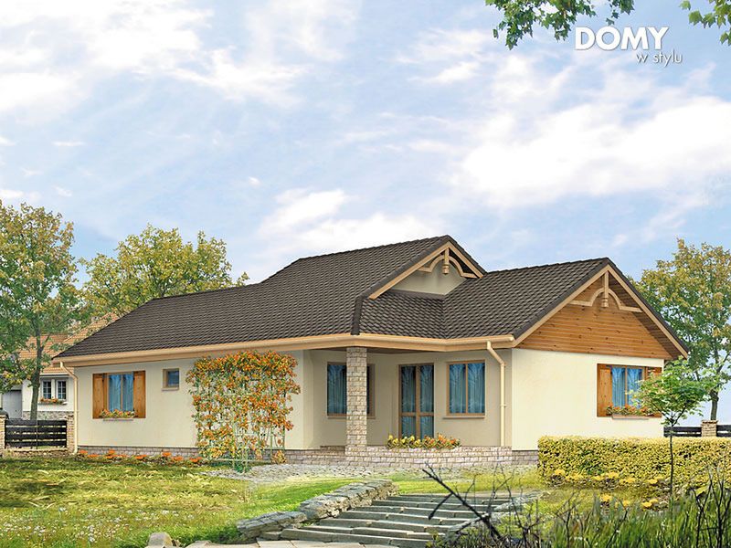 Graficzne opracowanie rzutów poglądowych widocznych na karcie projektu zostało wykonane przez Extradom.pl. Prezentowane przez Extradom.pl wizualizacje wykonane zostały przez autora projektu i należy poczytywać je jedynie za przykład i propozycję wykończenia, wizję architektoniczną autora projektu. Ostateczne wykończenie budynku może nastąpić na wiele sposobów. Szczegółowe rozwiązania zastosowane w oferowanej dokumentacji - w tym również ilość, lokalizacje i wygląd okien, drzwi, kominów - mogą w niewielkim stopniu różnić się od prezentowanej wizualizacji budynku.