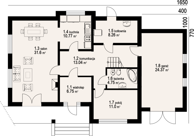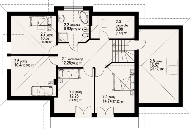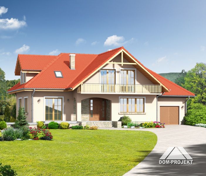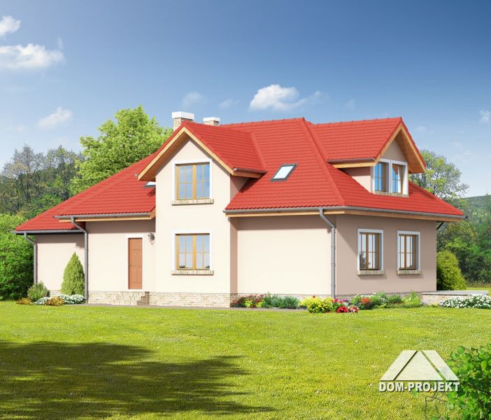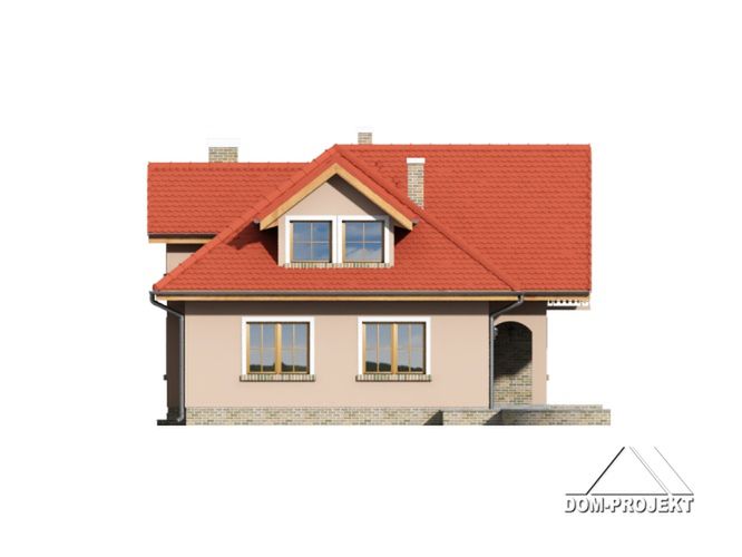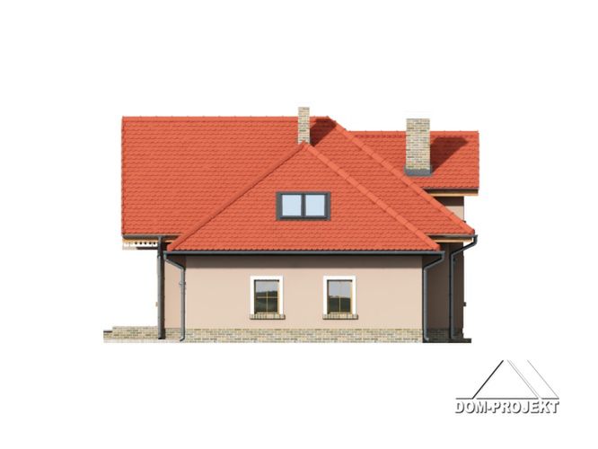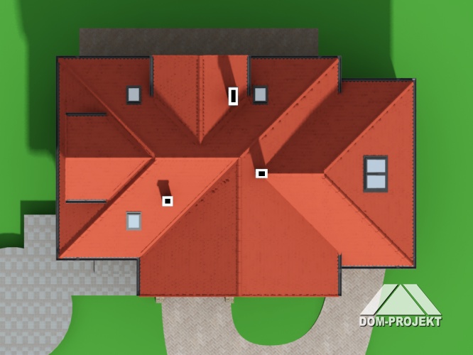 Graficzne opracowanie rzutów poglądowych widocznych na karcie projektu zostało wykonane przez Extradom.pl. Prezentowane przez Extradom.pl wizualizacje wykonane zostały przez autora projektu i należy poczytywać je jedynie za przykład i propozycję wykończenia, wizję architektoniczną autora projektu. Ostateczne wykończenie budynku może nastąpić na wiele sposobów. Szczegółowe rozwiązania zastosowane w oferowanej dokumentacji - w tym również ilość, lokalizacje i wygląd okien, drzwi, kominów - mogą w niewielkim stopniu różnić się od prezentowanej wizualizacji budynku.